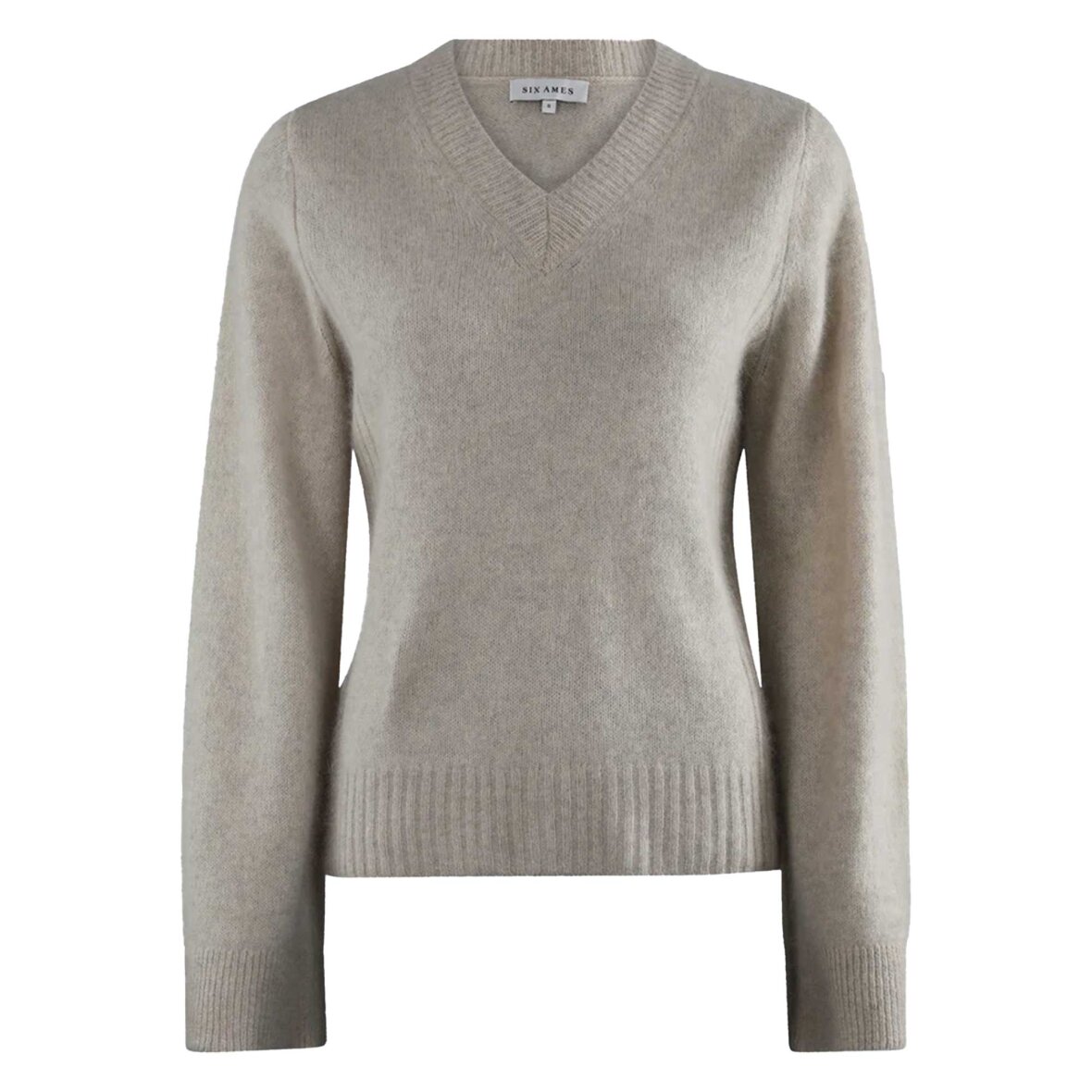 Rioa er en strikket sweater med et klassisk, regular fit, V-udskæring og lange ærmer. Den har fine ribdetaljer ved hals og manchetter, en lidt bredere rib forneden samt diskrete ribpaneler i siderne, der giver struktur og et elegant udtryk. En luksuriøs og tidløs strik med en blød og let kvalitet, perfekt til både hverdag og afslappede dage.