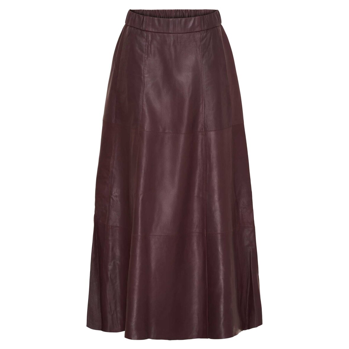 Stilren A-formet lædernederdel fra BTF CPH i sort med elastik i taljen og sidesømmede lommer. En elegant og tidløs nederdel, der egner sig både til fest og hverdag, og som med sit kvalitets materiale og minimalistiske snit giver et eksklusivt udtryk.