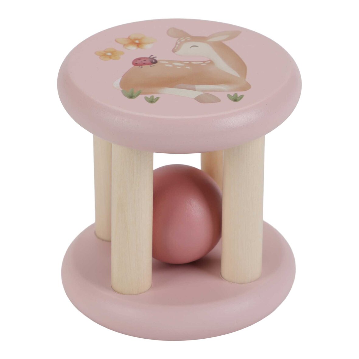 Denne charmerende rulle rangle ruller frem og tilbage og afgiver en raslende lyd, som børn elsker at jage, gribe og ryste. De lyserøde sider er dekoreret med fortryllende illustrationer fra Fairy Garden-kollektionen, med en sød hjort og en venlig mariehøne i et frodigt havemiljø. Ranglen fremmer hånd-øje-koordination og er perfekt til små hænder, der kan udforske og lege med den.