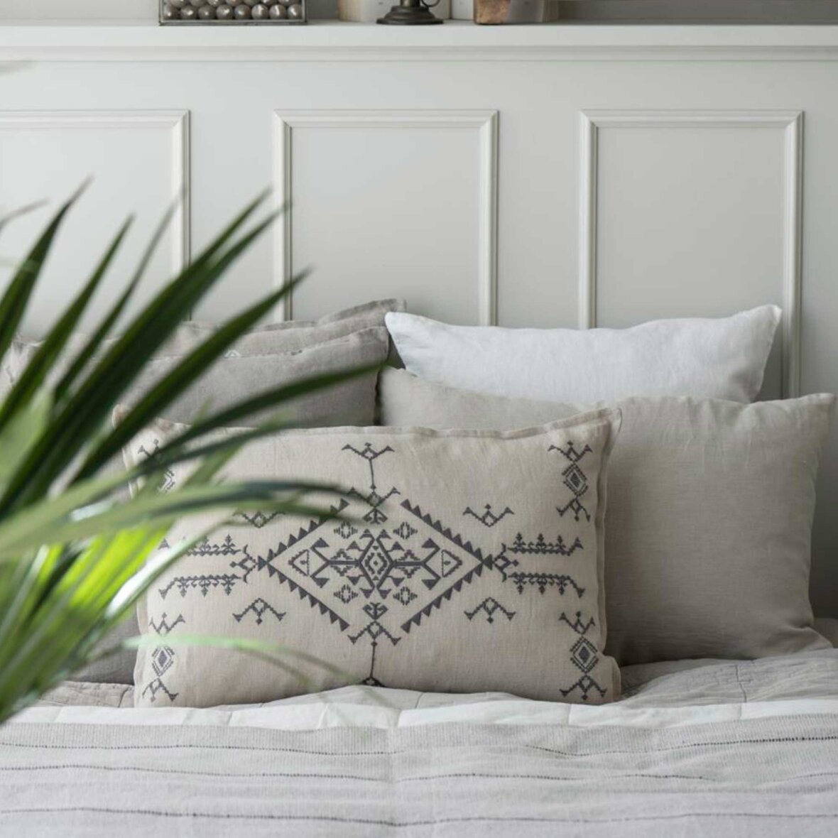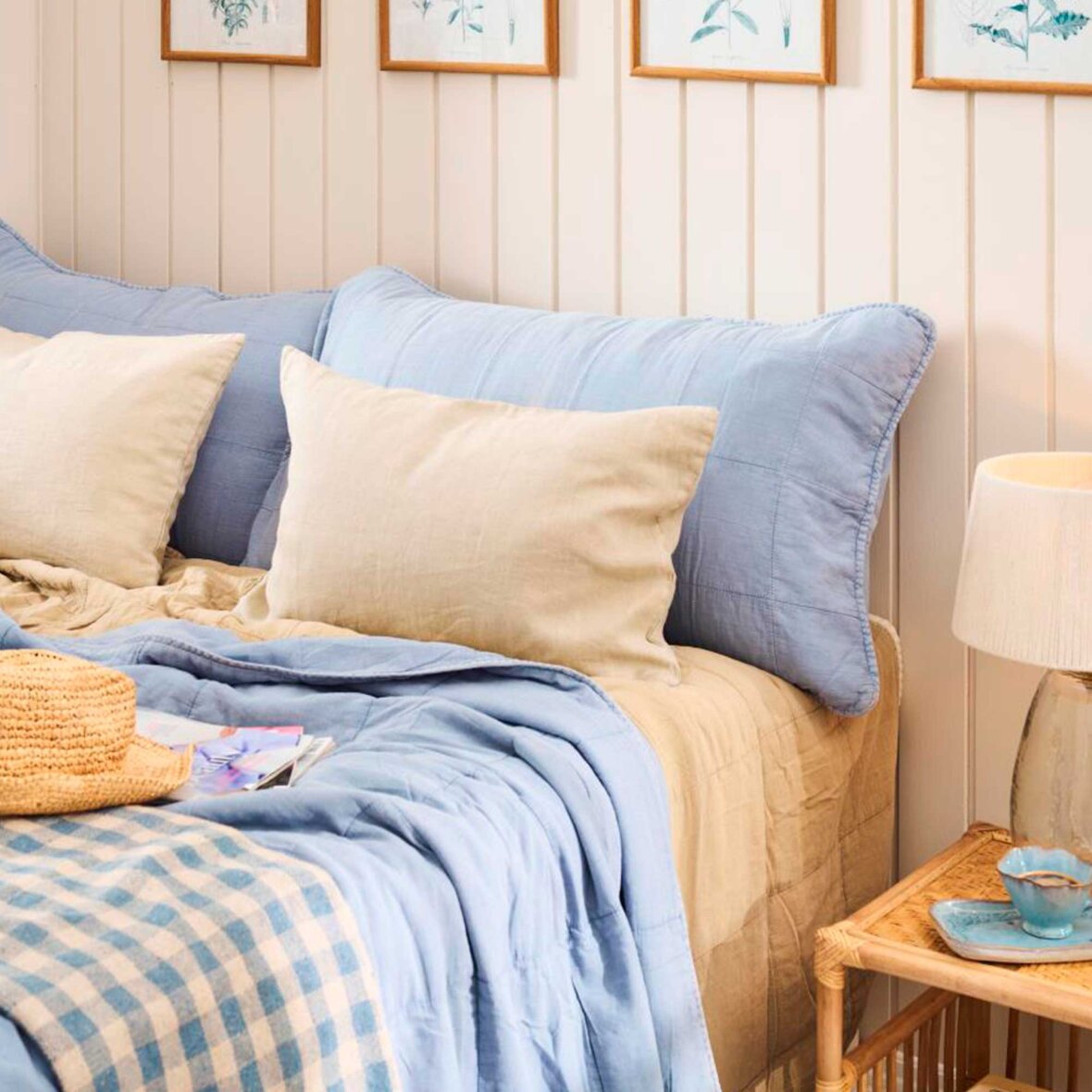 PUDE NATUR M/STRIBER 50X70 CM | HVIDE/LYSEBLÅ STRIBER