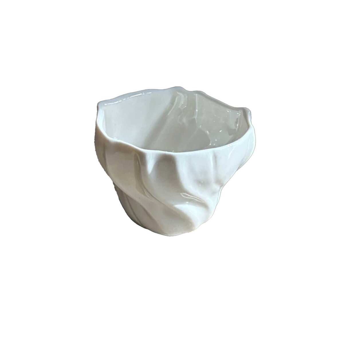 Denne kop er håndlavet i Aarhus i det fineste hvide porcelænsler. Størrelsen passer perfekt ind i din kop-reol, og koppen tåler opvaskemaskine, hvilket gør den velegnet til hverdagsbrug.