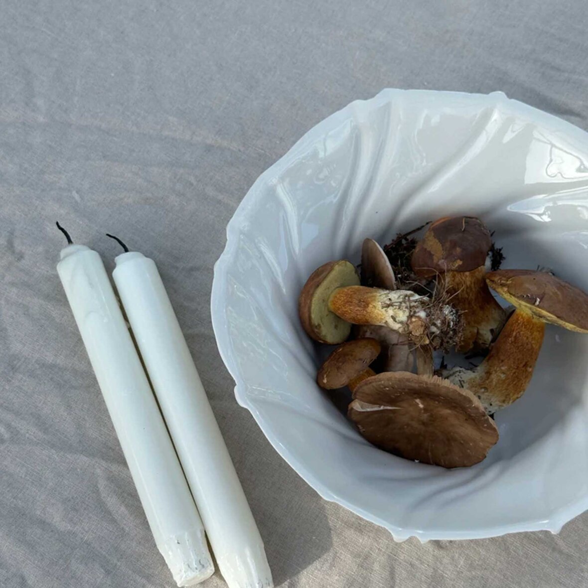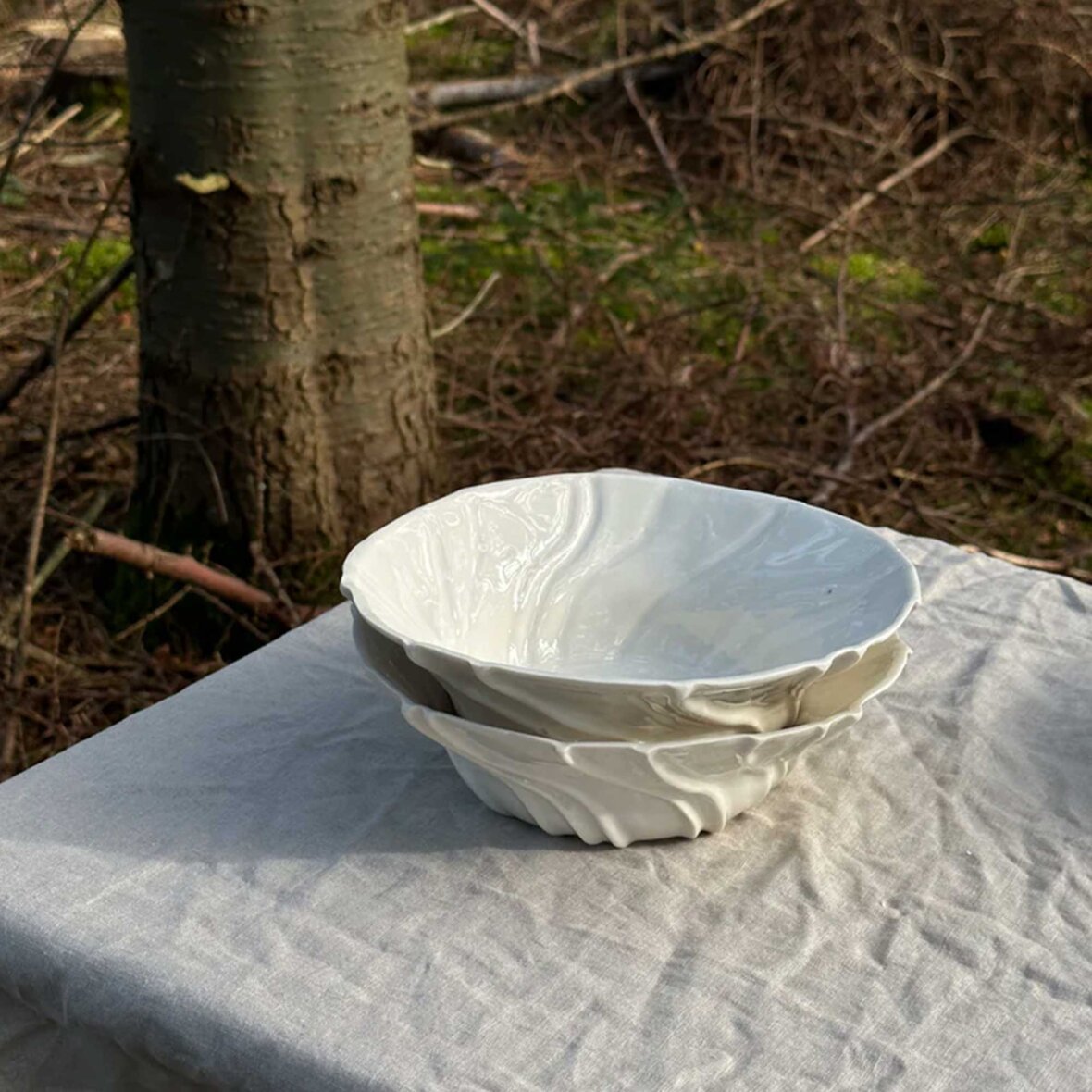 Skålen er håndlavet i Århus i det fineste hvide porcelænsler og tåler opvaskemaskine.