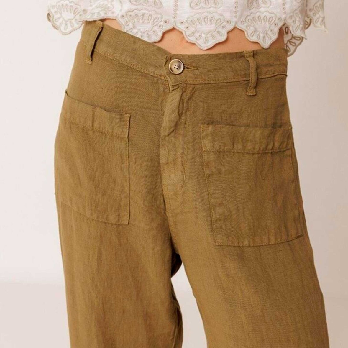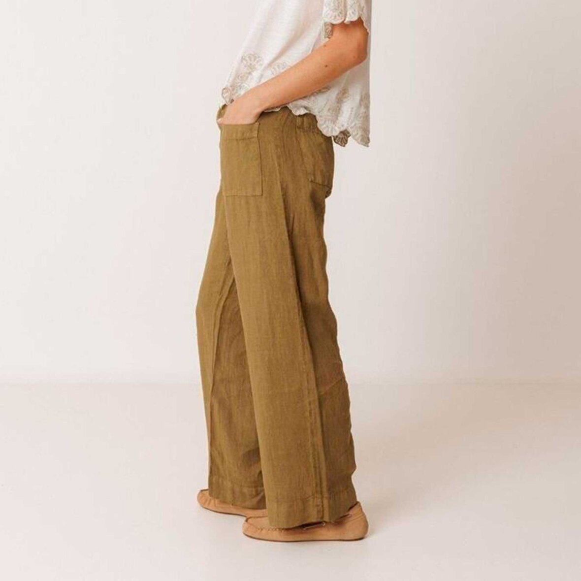 Super skønne bukser i hør fra Indi & Cold. Pantalon CC252 er fremstillet i en let og blød hørkvalitet med et afslappet look. Bukserne har fast linning foran og elastik bagpå samt stropper til bælte. Lukkes med lynlås og dekorativ knap, og har to påsyede lommer foran og bagpå. Benene er vide for et elegant og luftigt udtryk.