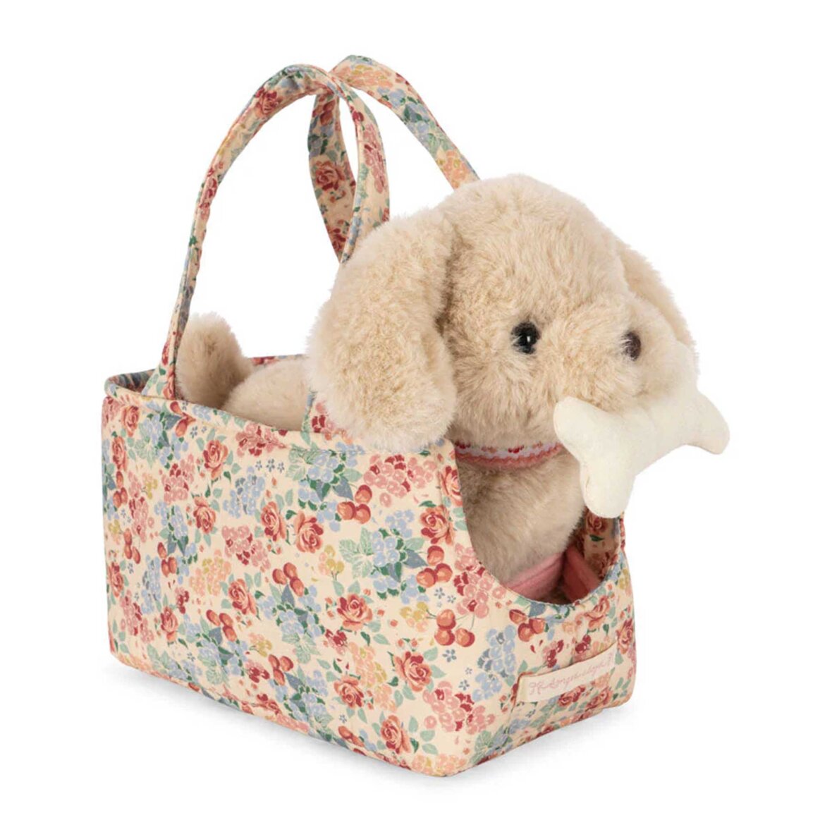 Materiale: Hvalp: 100% polyester, Sløjfe: 100% polyester, Kurv og tyggelegetøj: 100% bomuld, Fyld: 100% polyester