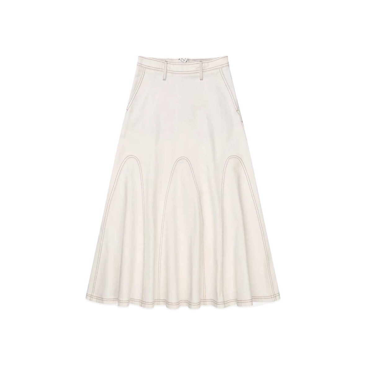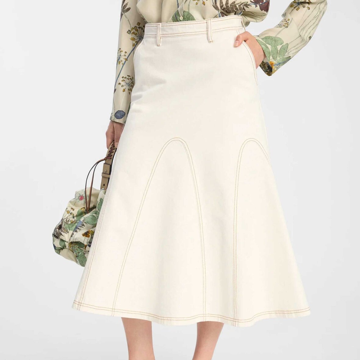 Denimnederdel i en flatterende midi-længde med let flare. Designet med strukturerede sømlinjer og en regulær pasform, der giver et rent og moderne udtryk.