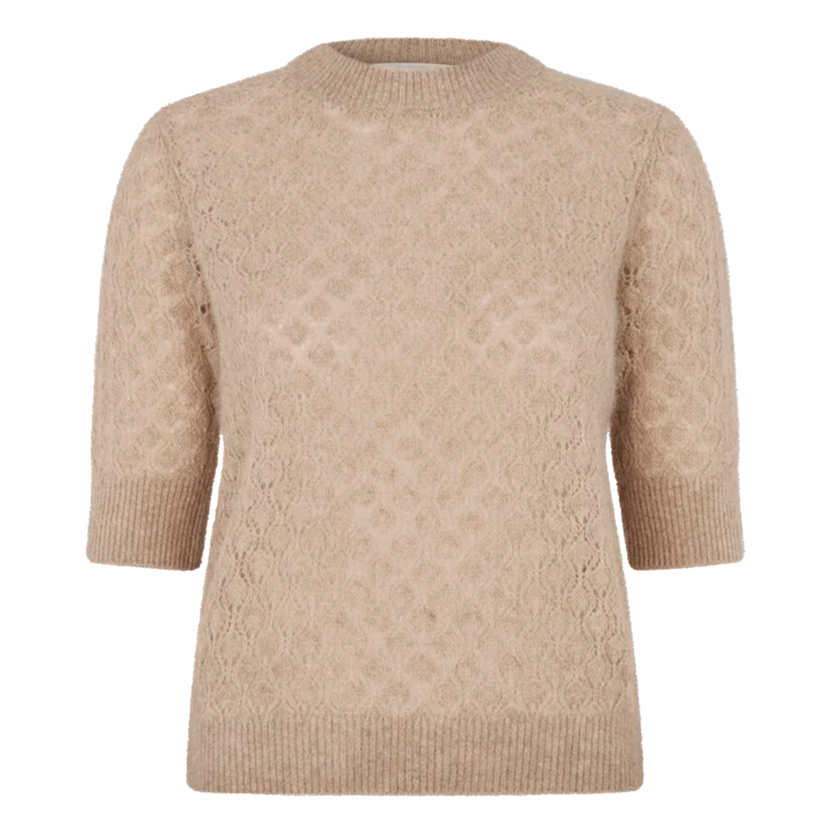 CASHMERE PULLOVER W/SHORT SLEEVE | BEIGE MELANGE