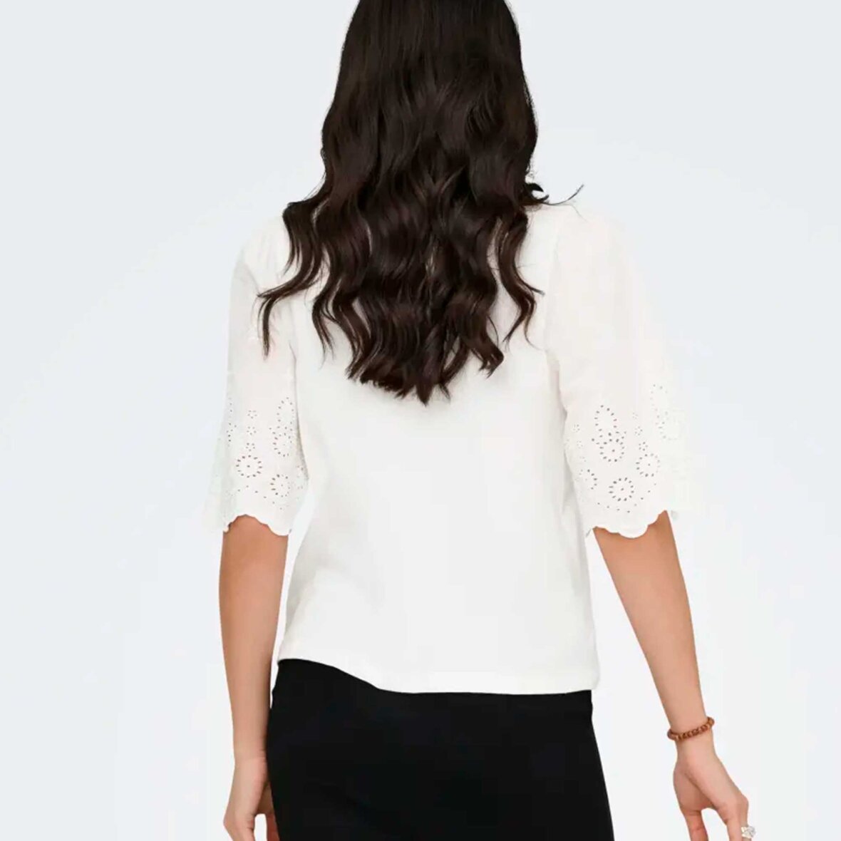 Fin og bæredygtig – denne top fra JDY er lavet af blød, økologisk bomuld og kombinerer komfort med delikate detaljer. De korte ærmer er pyntet med broderi, og den klassiske runde hals giver et tidløst og alsidigt look, perfekt til både hverdagsbrug og lag-på-lag styling.