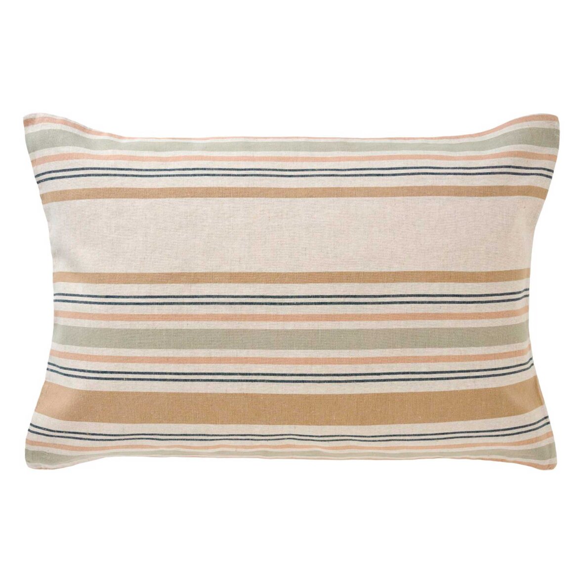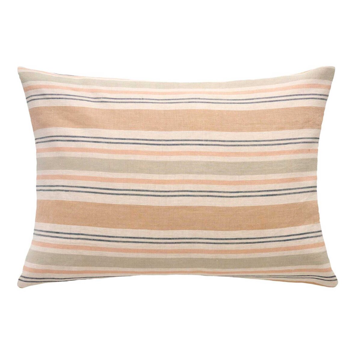 Pude i en blød hør- og bomuldsblanding med elegante striber i naturtoner. Hvert betræk er unikt, da stribernes placering kan variere, hvilket giver et personligt og naturligt udtryk.