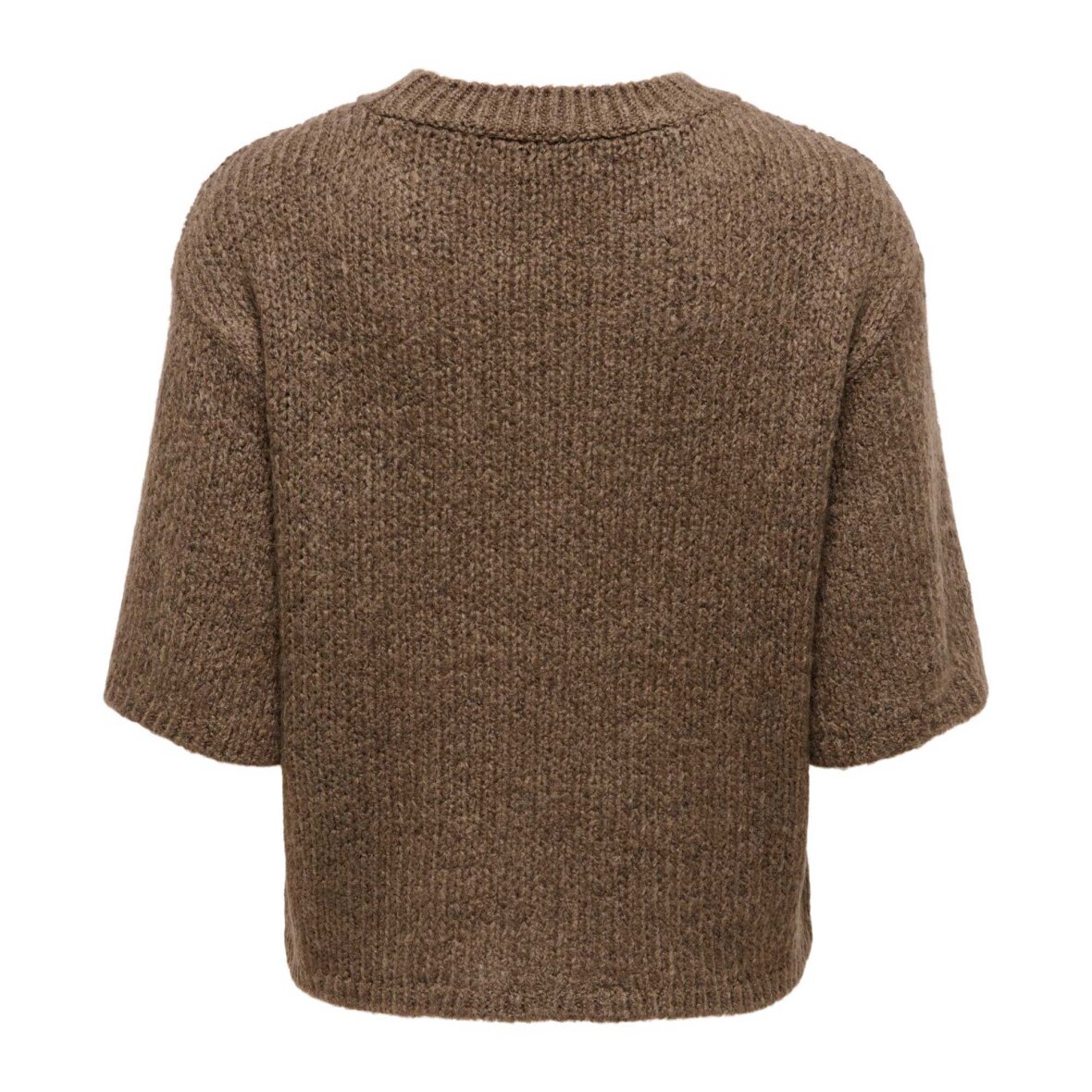En blød, kortærmet striktrøje med rund halsudskæring og en afslappet pasform, der gør den nem at bruge i både hverdagens og weekendens outfits. Den lette strik tilfører tekstur og komfort, så den fungerer perfekt alene eller som et ekstra lag over en skjorte eller t-shirt. Farven Shitake er en lækker brun nuance, der giver et neutralt, varmt udtryk, der er let at kombinere med både jeans og nederdele.