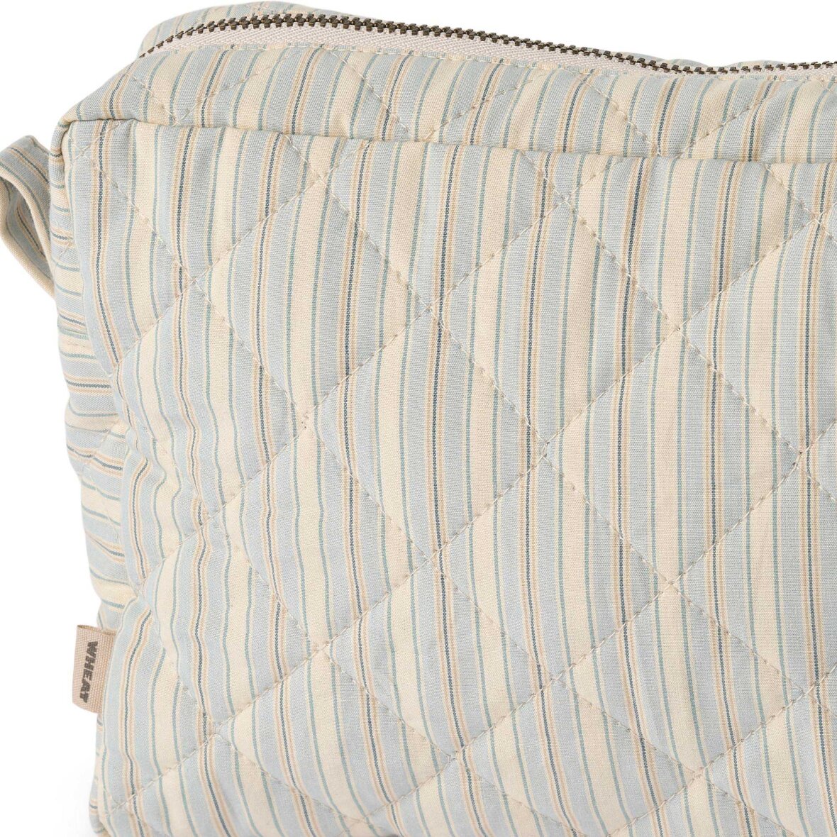 Praktisk og rummelig lille toilettaske i blød, quiltet økologisk bomuld med klassiske striber. Tasken holder dit barns toiletartikler organiseret og let tilgængelige – både hjemme og på farten.