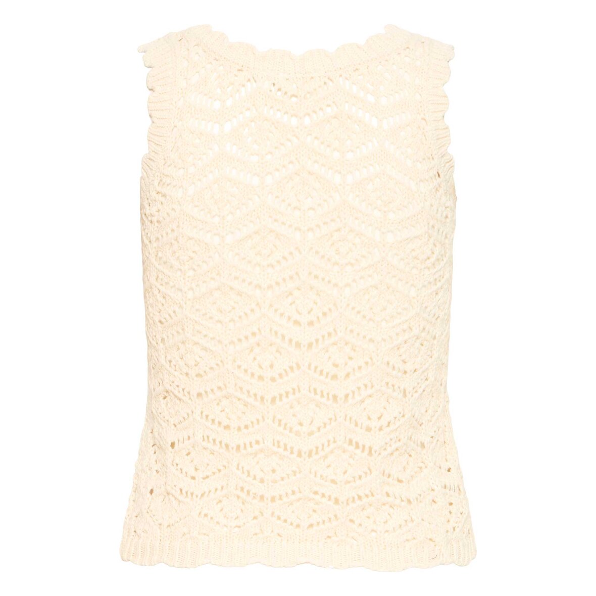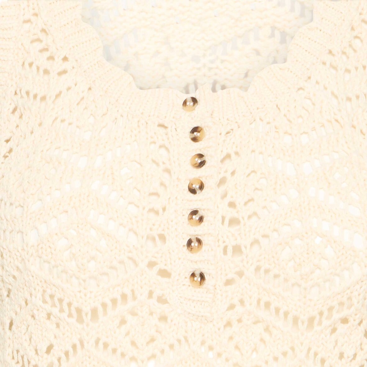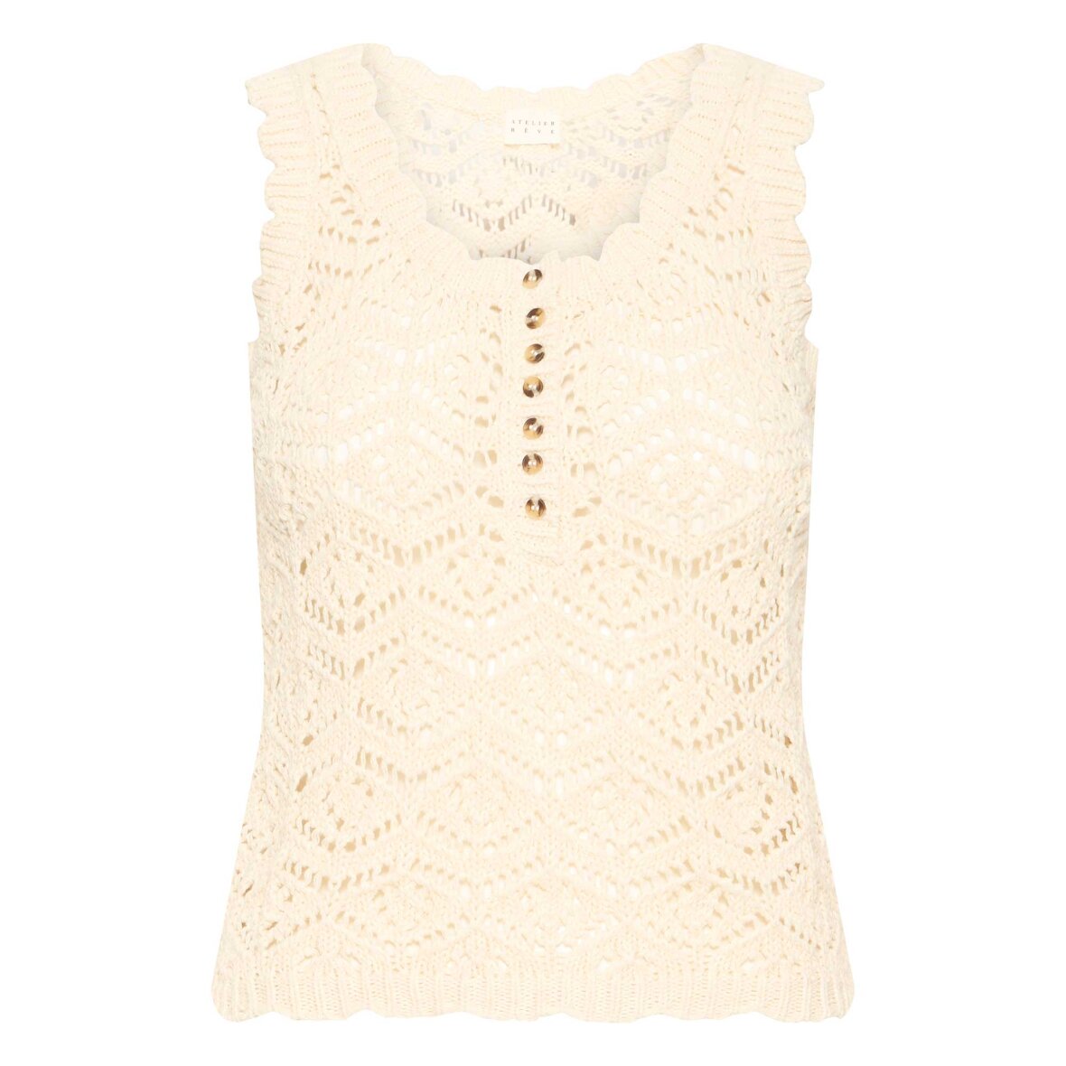 En feminin og let top med et elegant, hæklet udtryk. Toppen har rund hals med fine knapper foran som giver et tidløst look med fine detaljer som den bølgede kant og dekorativt finish. En stilfuld og nem top at style til hverdag og mere festlige anledninger