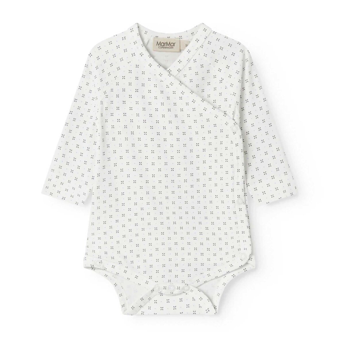 Blød og komfortabel langærmet bodystocking til nyfødte med praktisk slå-om-lukning, der gør påklædning nem og skånsom for de mindste. De fine picotkanter tilfører et sødt og feminint udtryk.