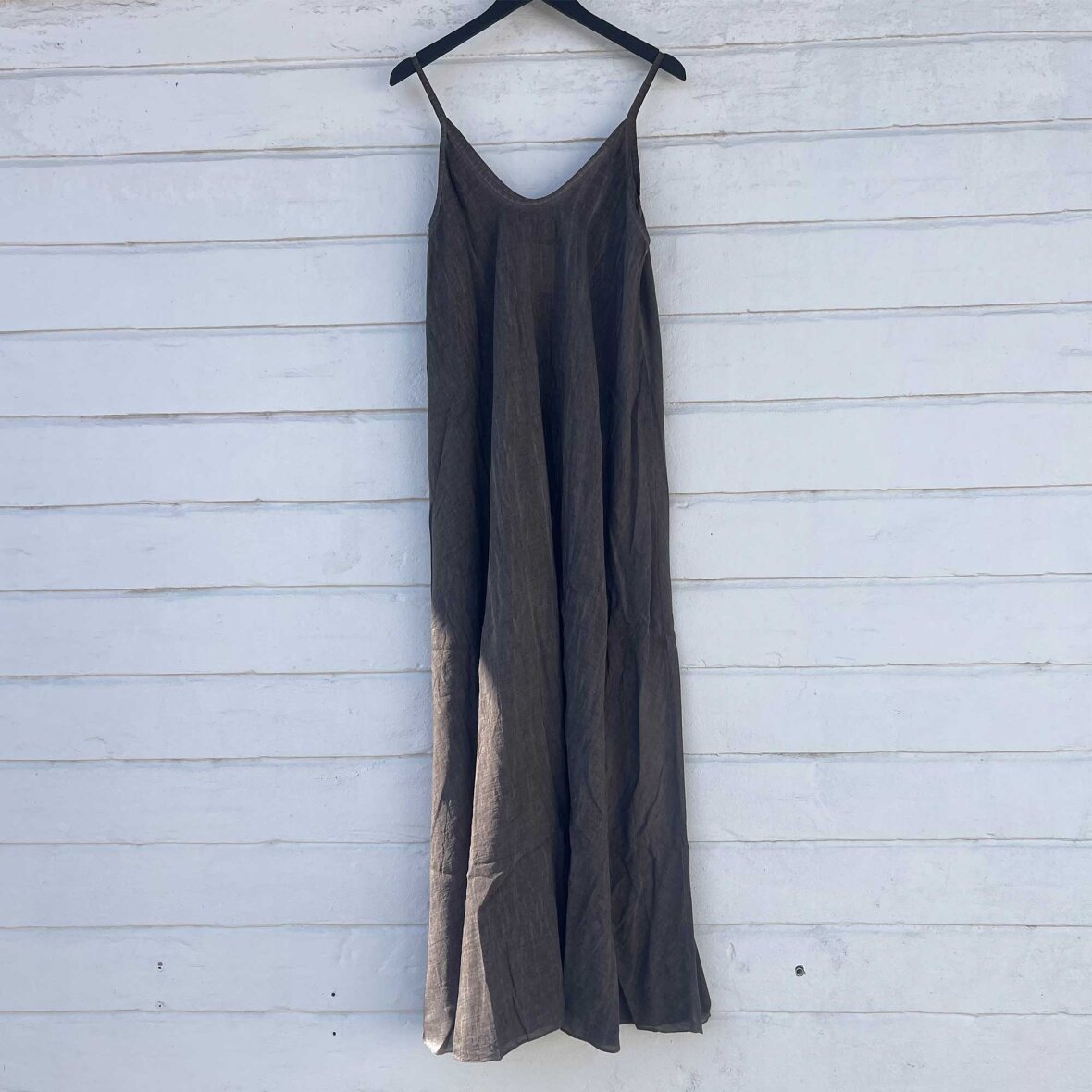 En feminin og let kjole i en smuk, mørk brun nuance, der giver et elegant og afbalanceret udtryk. Kjolen har et let fald og en behagelig pasform, som gør den rar at have på hele dagen - især til de varme dage