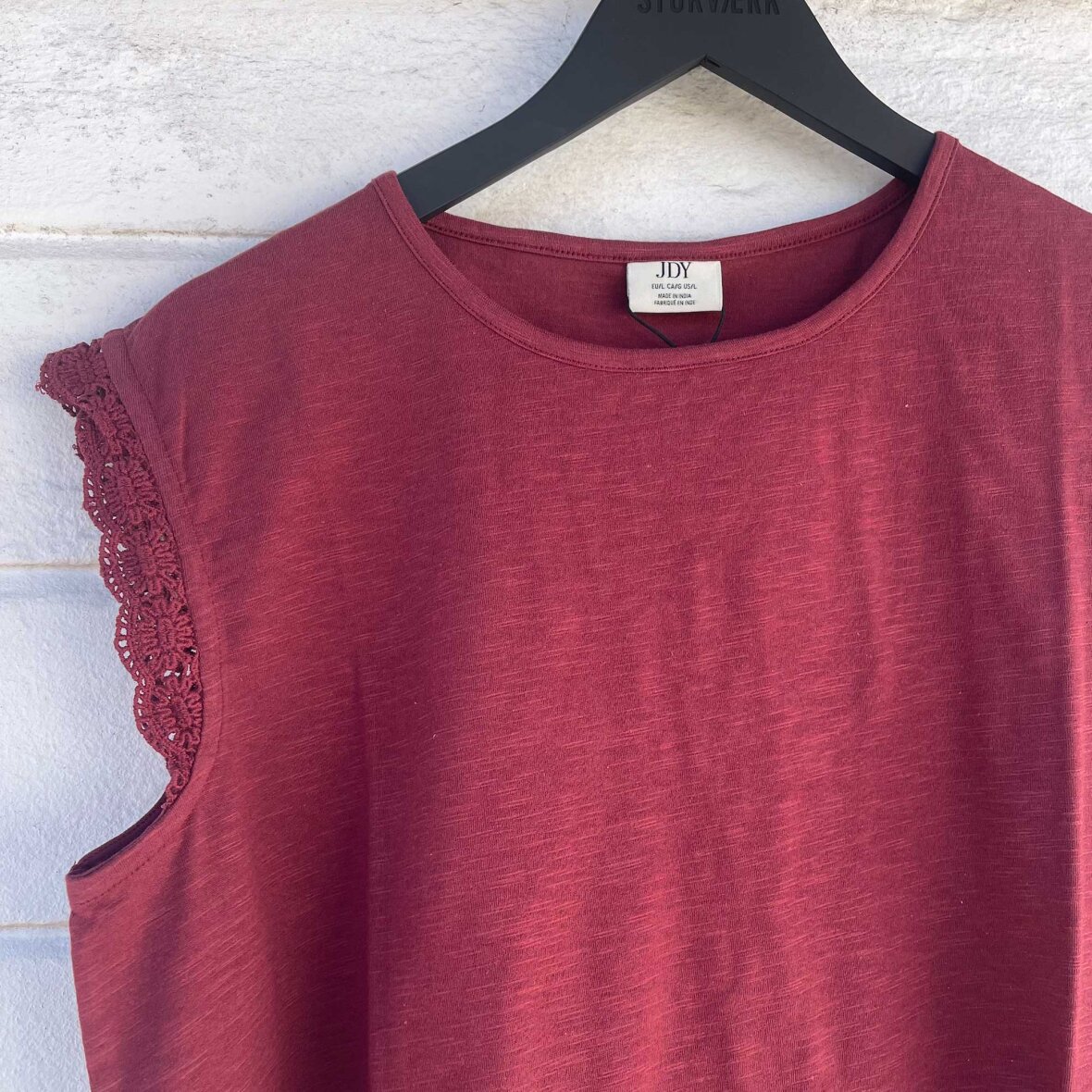 Enkel top med O-hals og ærmeløst design, der giver et let og anvendeligt udtryk. De fine blondedetaljer tilfører et feminint touch, mens den regular fit pasform gør den behagelig at have på. Perfekt til både hverdag, arbejde og afslappede aktiviteter.