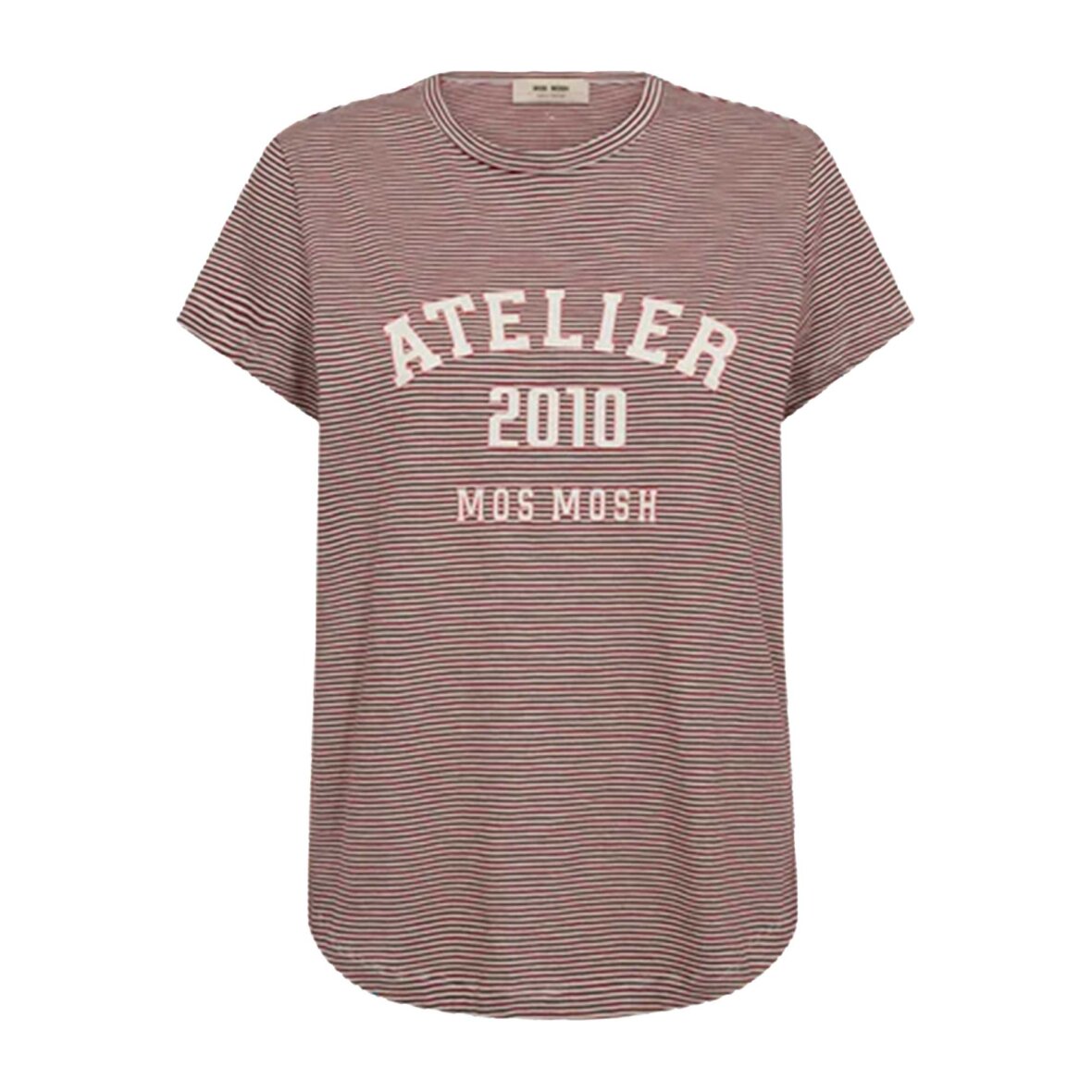 Stribet T-shirt med rund hals og korte ærmer i et afslappet og klassisk design. Den bløde kvalitet og regulære pasform gør den behagelig at have på hele dagen. En nem style, der passer ind i enhver garderobe.