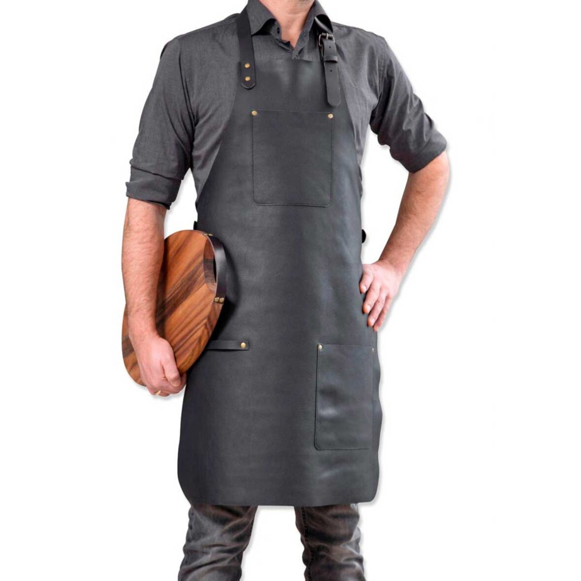 Desuden har forklædet en regulerbar rem, der går rundt om nakken, og lange remme i læder som kan bindes foran eller bagpå forklædet.