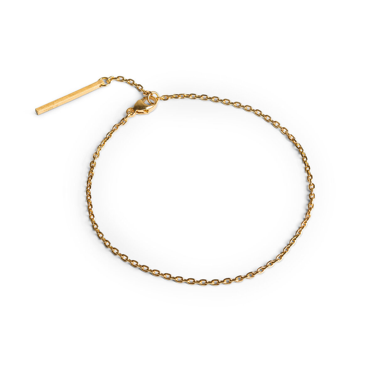 Ankerkæde armbånd i mat, forgyldt sterlingsølv. Armbåndet har en tykkelse på 1,2 mm og kan justeres til størrelserne 15,5 og 17 cm.