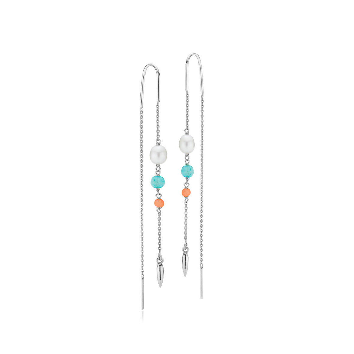 Super flotte lange feminine Gaby øreringe fra Sistie. På disse smukke øreringe er der halvædelsten i tyrkis og koral samt ferskvandsperler.