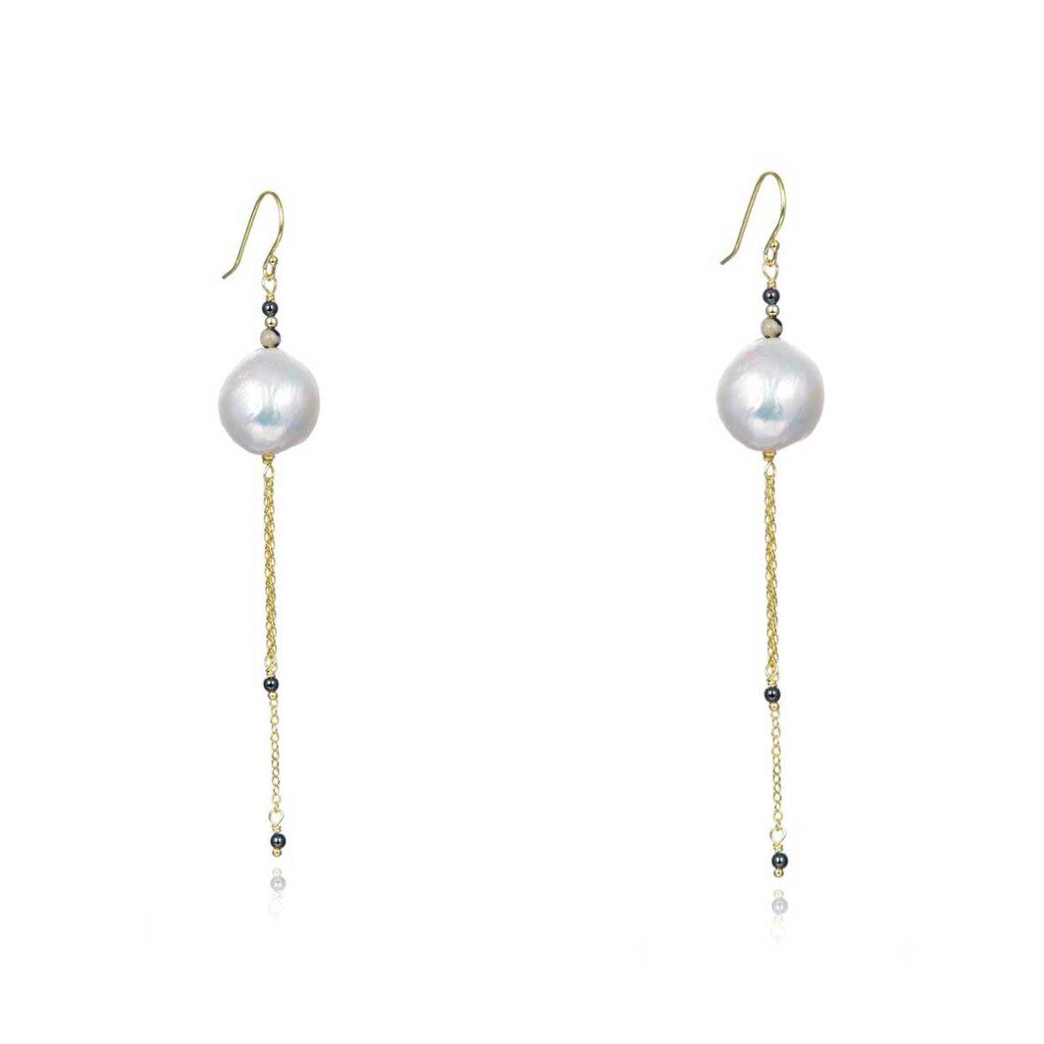 Stina ørering er med en smuk barok perler samt fine halvædelsten af dalmatiner og hæmatit - de passer perfekt til at mixe andre øreringe, men kan også sagtens bæres alene for et elegant eller råt look, alt efter egen stil!