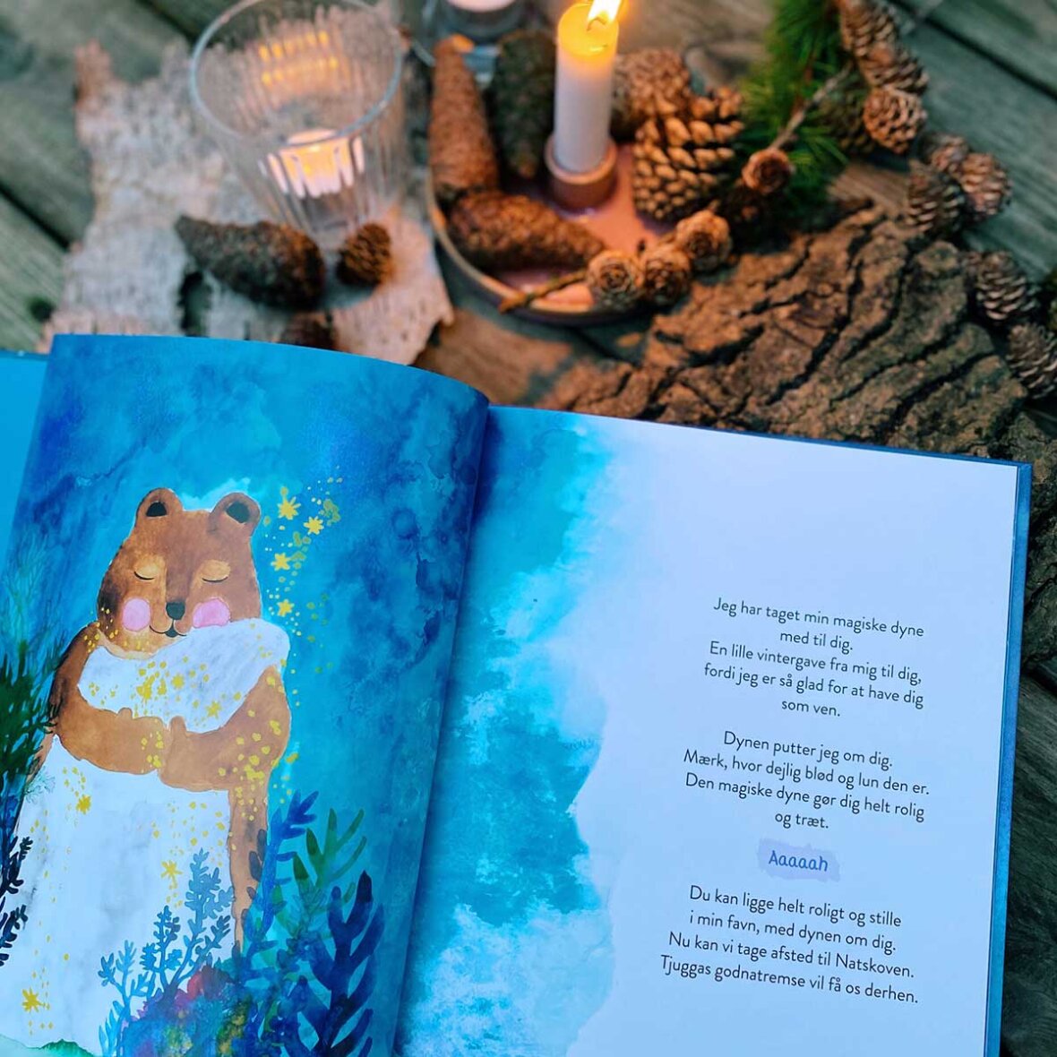 I Natbjørnen Tjugga og snefnuggene er der særligt fokus på at bruge elementerne fra vinteren til at skabe ro. Sammen med Tjugga tager dit barn på en smuk drømmerejse til Natskoven, hvor Tjugga bor. På rejsen kan dit barn indsnuse den friske luft, smage på snefnuggene, kigge på alt det smukke og mærke varmen fra Tjugga.