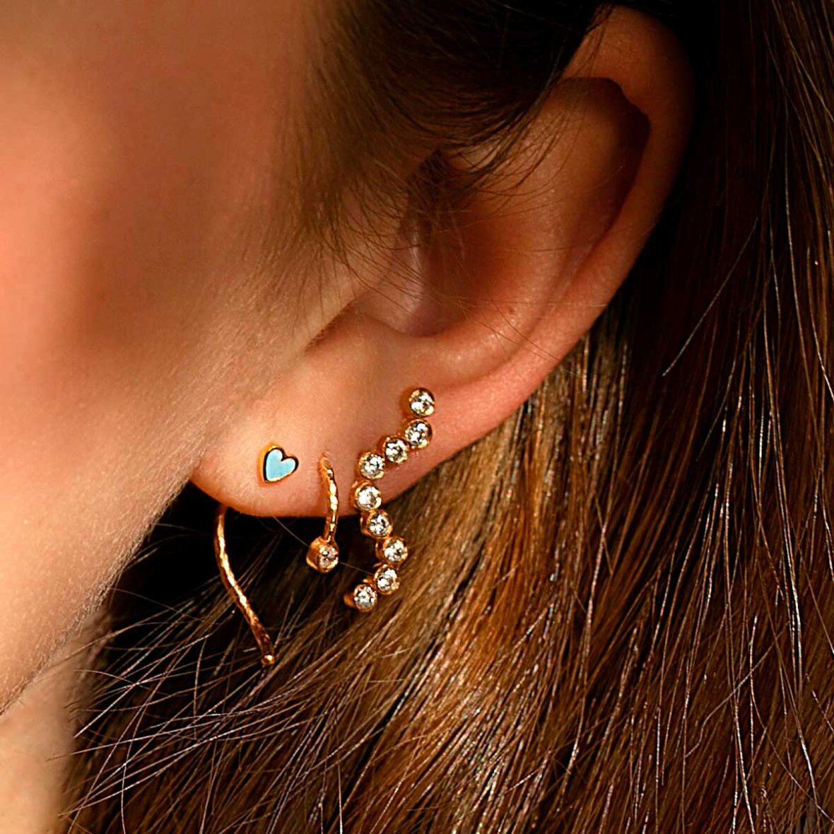 PETIT LOVE HEART ØRERING - 1 STK. | FORGYLDT M/LYS BLÅ ENAMEL