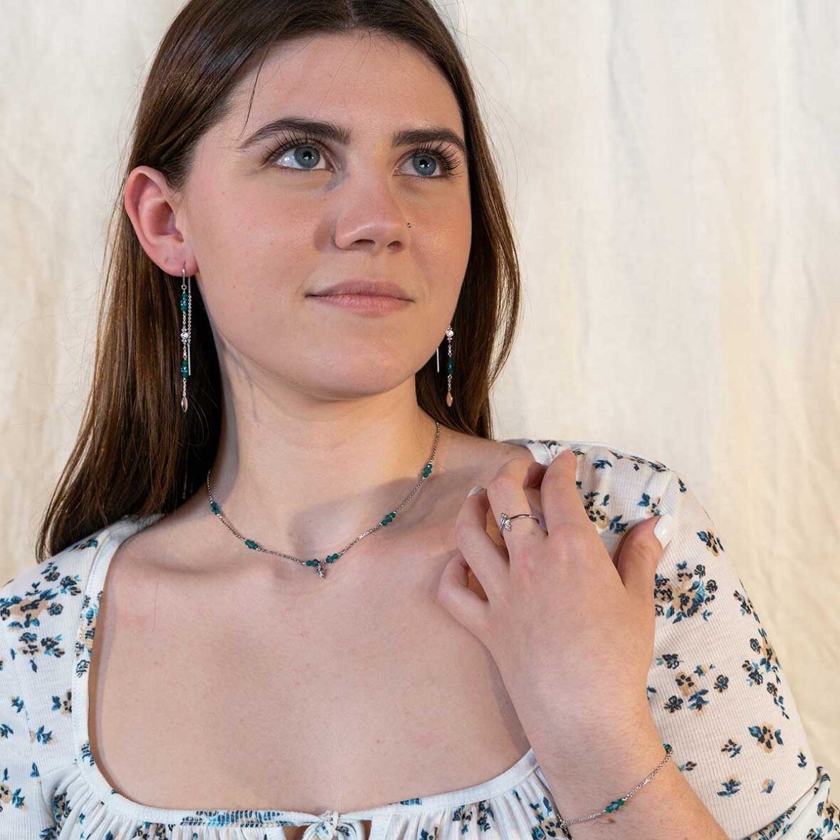 Fint armbånd fra Sofie X Sistie kollektionen med grøn onyx og indigo blå swarovski. Kan styles med halskæde, øreringe, ringe og armbånd fra samme kollektion.