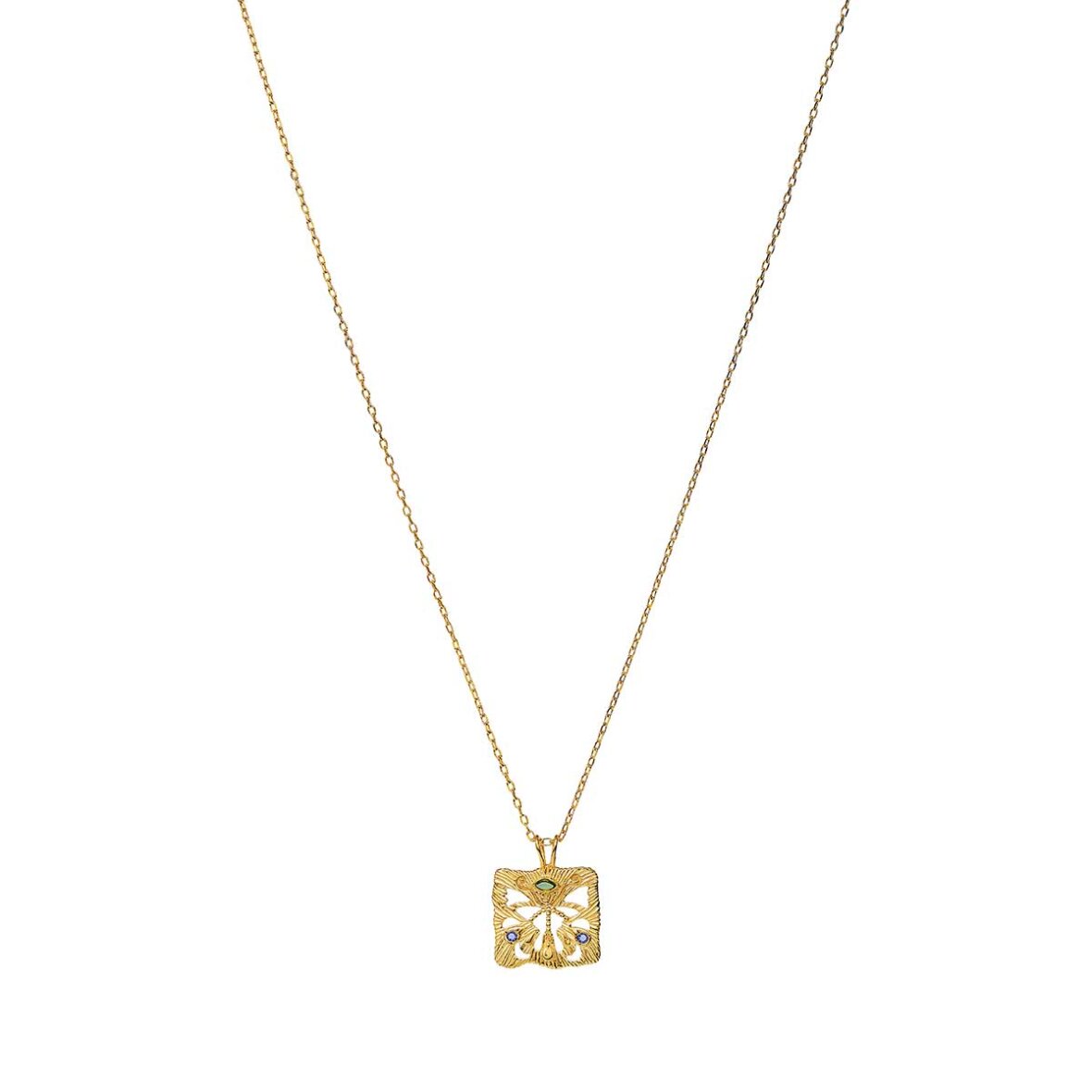 Annabella halskæde fra Maanesten. Denne halskæde består af en super smuk medaljon med et smukt natsværmer-motiv, et symbol på transformation og nye begyndelser.