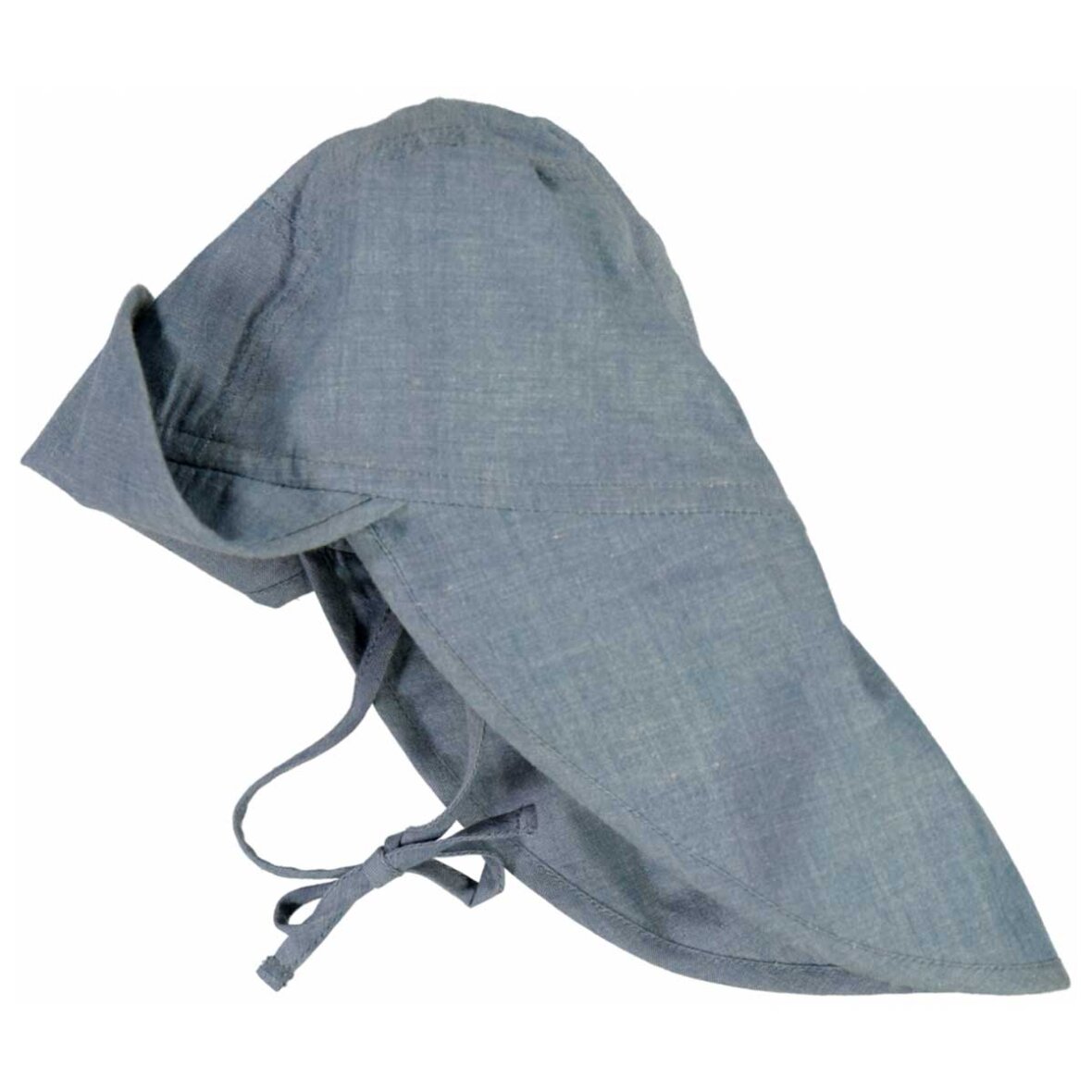 Solhat til baby fra Wheat. Dette er en super anvendelig solhat med skygge i blød bomuldschambray. Hatten har bånd, der kan bindes som en lille sløjfe under hagen. solhatten har en længere skygge bagtil, som beskytter dit barn med skarpe stråler i nakken.