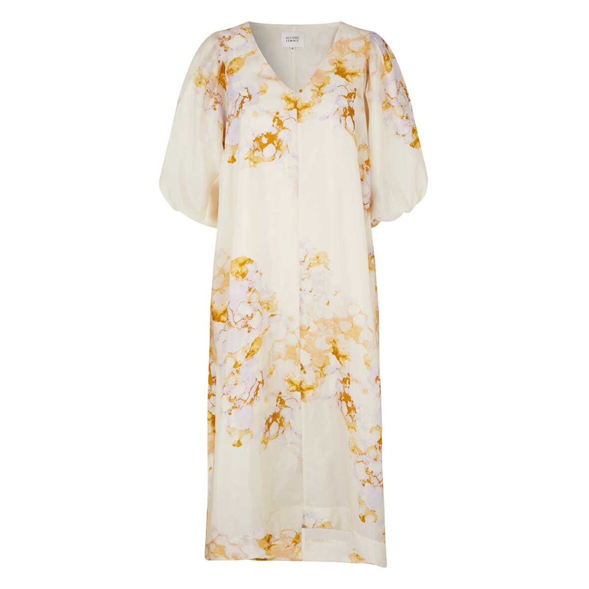 Super fin kjole med v hals og slids i begge sider fra second female med de sødeste puf ærmer, kjolen falder flot da der er påsyet underkjole.