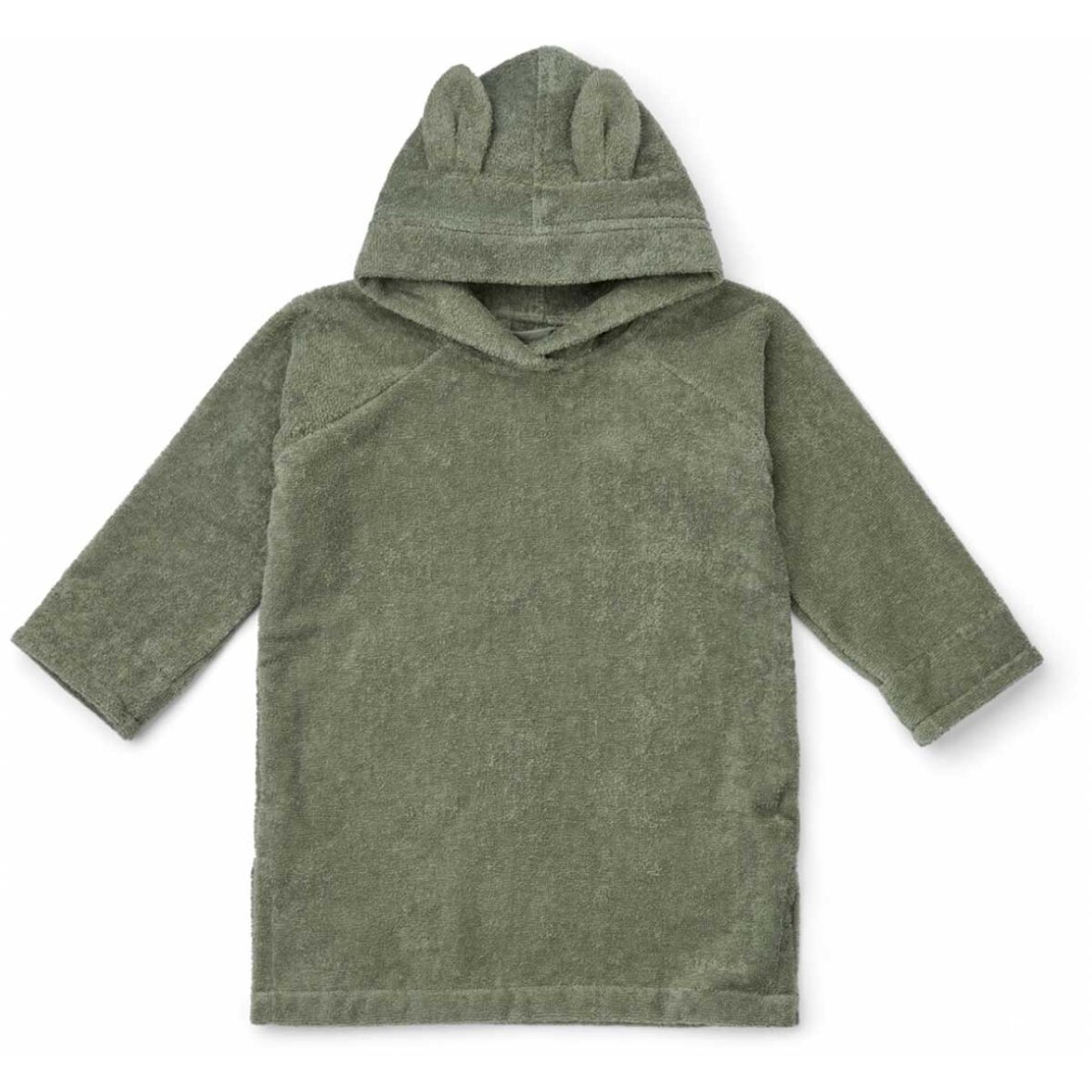 Ilja bådekæbe/poncho fra Liewood. Dette er en super sød badekåbe som kommer i den skønneste økologiske bomuldskvalitet. Dette badekåbe er helt perfekt til at smyge om sig efter badet, efter en tur til svømning eller efter en tur ved stranden. Poncho-designet er med hætte og giver dit barn ekstra lun og dejlig oplevelse.