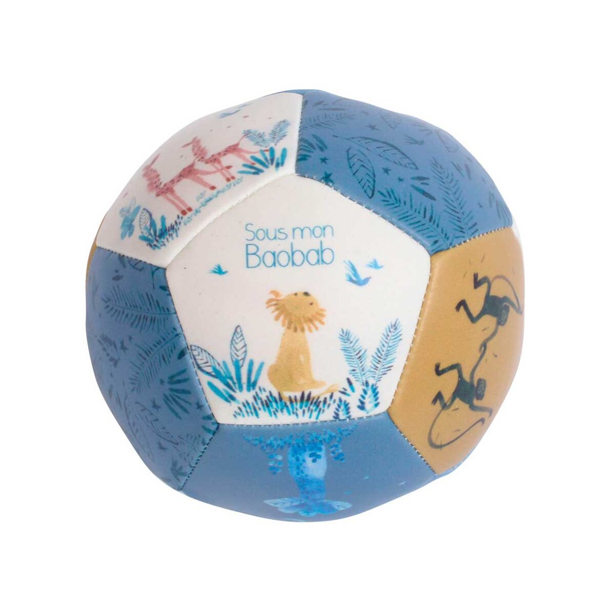 Blød bold fra Moulin Roty. Dette er en super fin lille blød bold, hvor de barn kan lære at trille, kaste eller sparke til den lille blod uden der sker noget. Denne bold er pyntet super fint, med søde motiver. Bolden er lavet i kunstlæder og er fyldt med bomuld.
