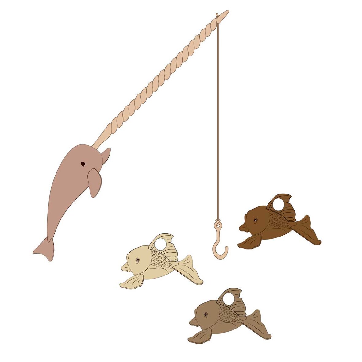 "Catch me if you can" fra Konges Sløjd. Dette badelegetøjssæt er fremstillet i silikone, med bomuldssnor.