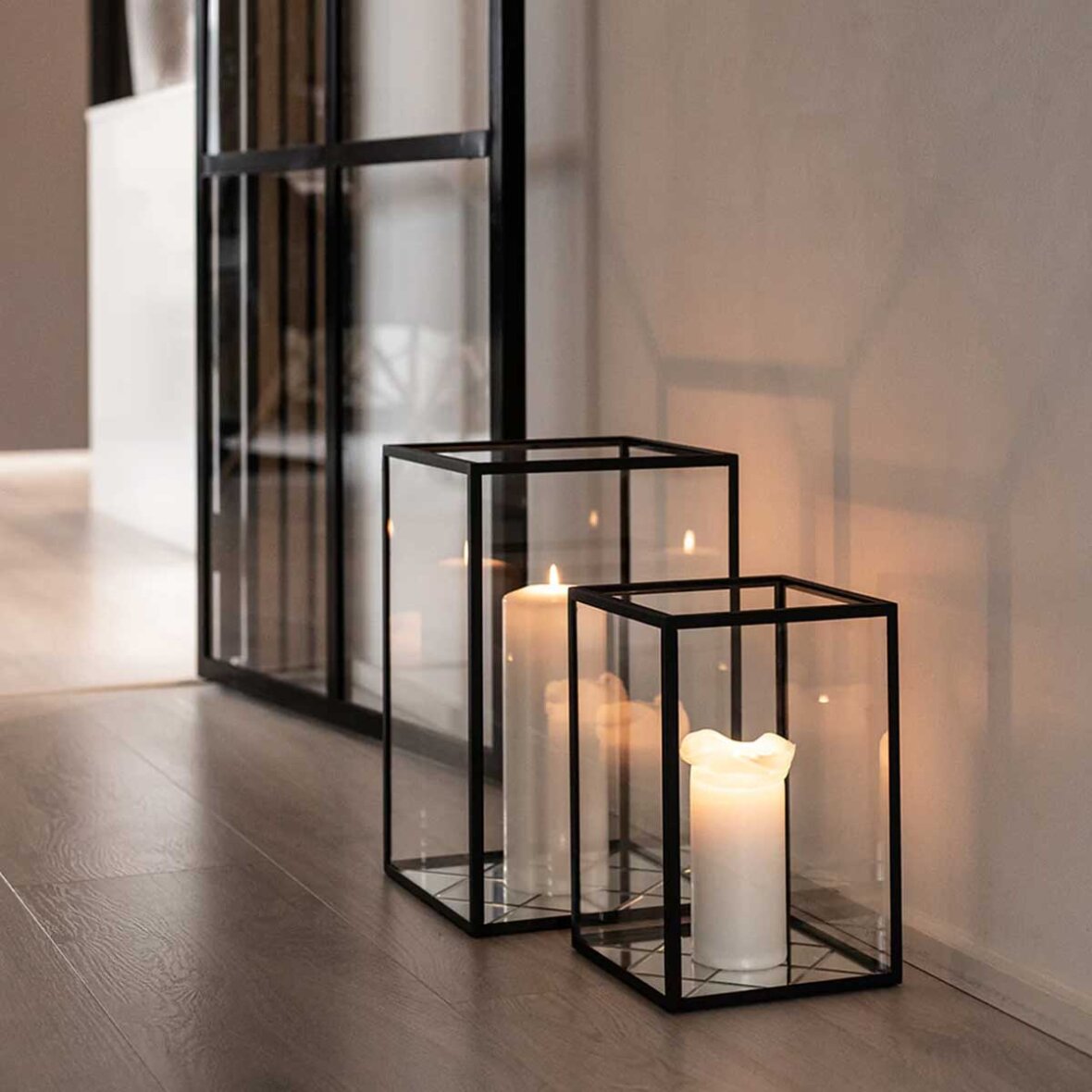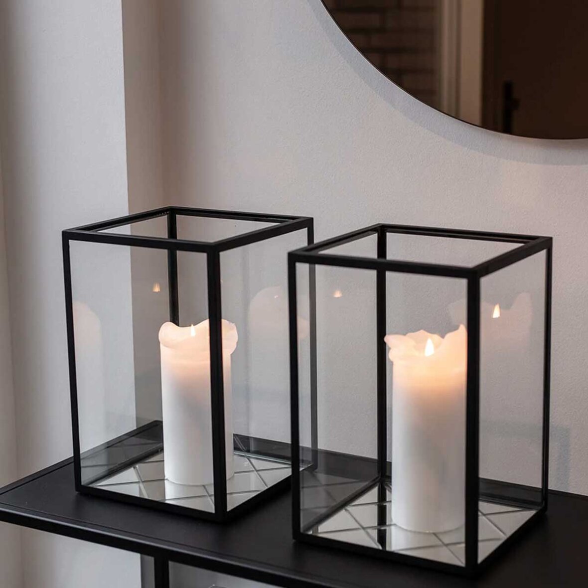 Harlequin lanterne med sort ramme fra Specktrum. Harlequin lanternen kombinerer det klassiske og elegante med det mere rustikke. Harlequin spejlet lader det smukke skær fra det levende stearinlys skabe smukke og dansende refleksioner.