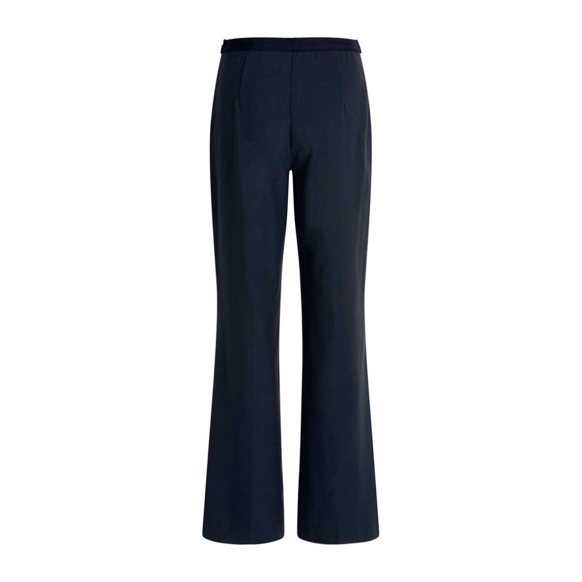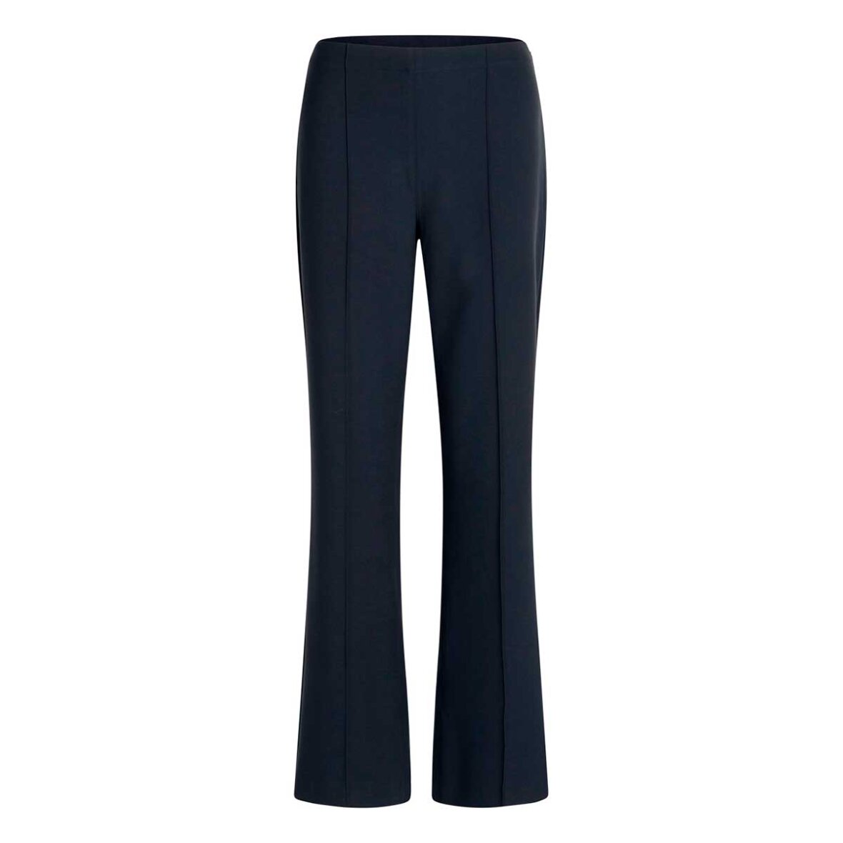 Recycled sportina Pirla bukser fra Mads Nørgaard. De er lette, bløde og en anelse stretchy. De har pressefoldsyninger og lukkes i siden. Benene har boot cut, linningen er fast, og pasformen er tætsiddende regular.