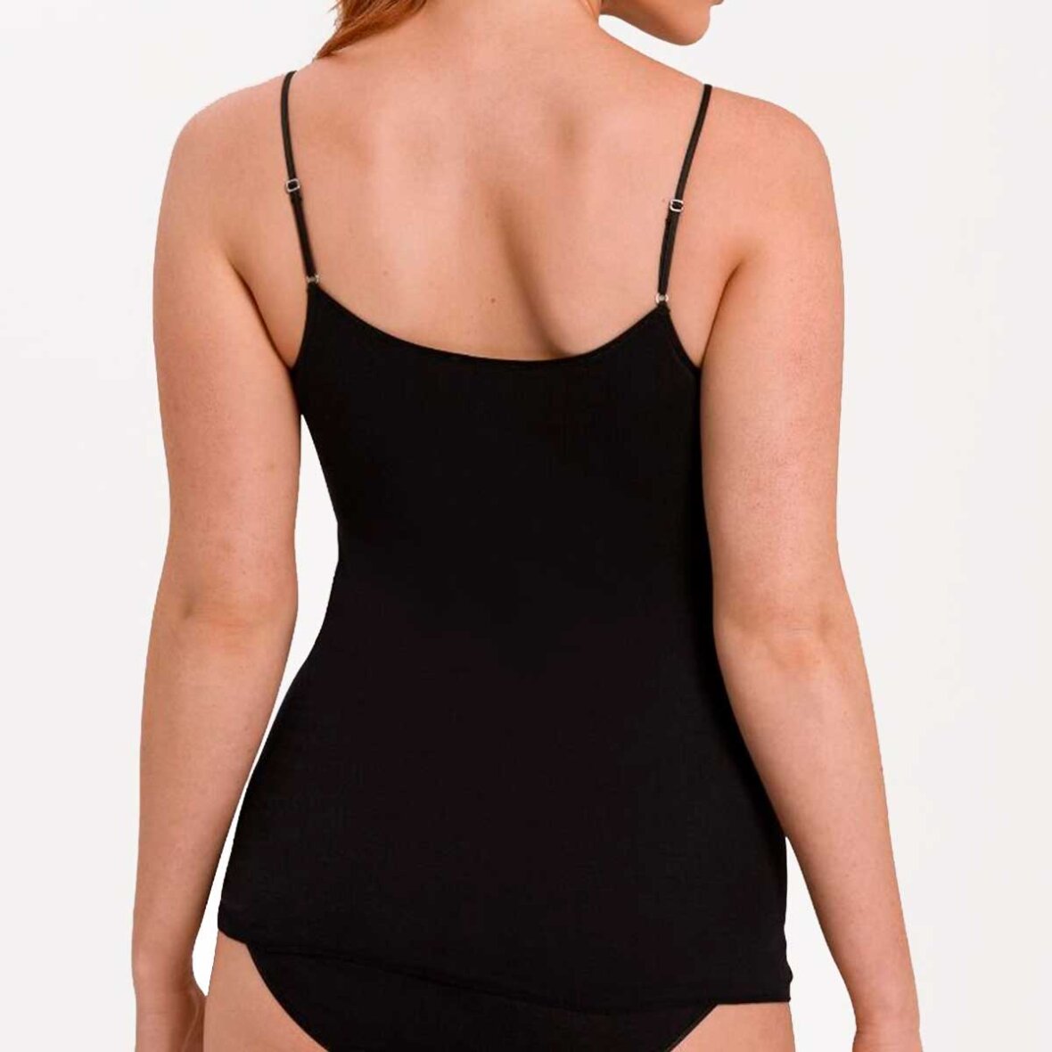 Spaghetti top fra Hanro. Dette er en super fin spaghetti top med v-halsudskæring. Den elegante v-halsudskæring med satinkant og de justerbare stropper med metalskydere garanterer alsidighed og optimal pasform. Du kan bruge toppen som en undertrøje, eller under din bluse eller blazer.