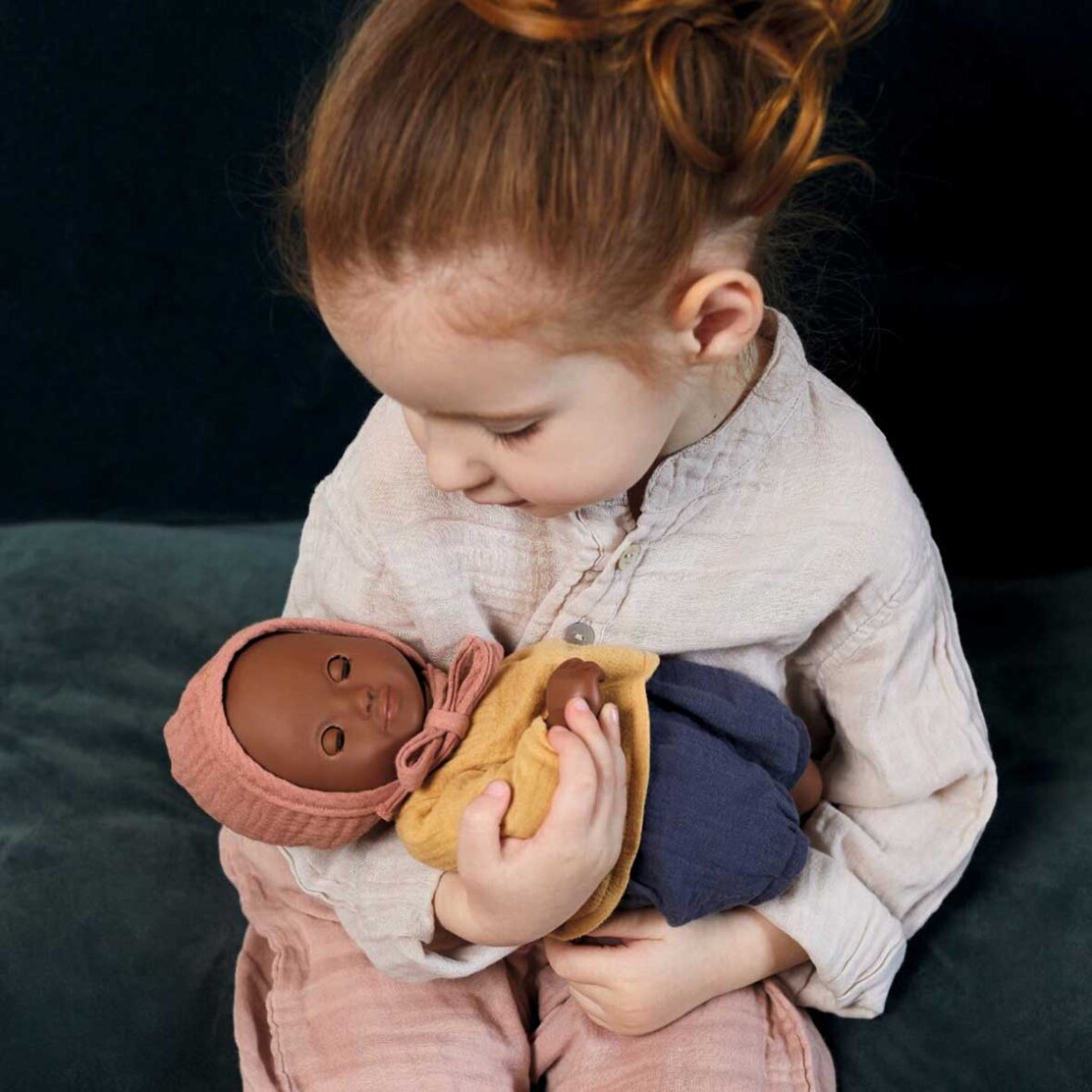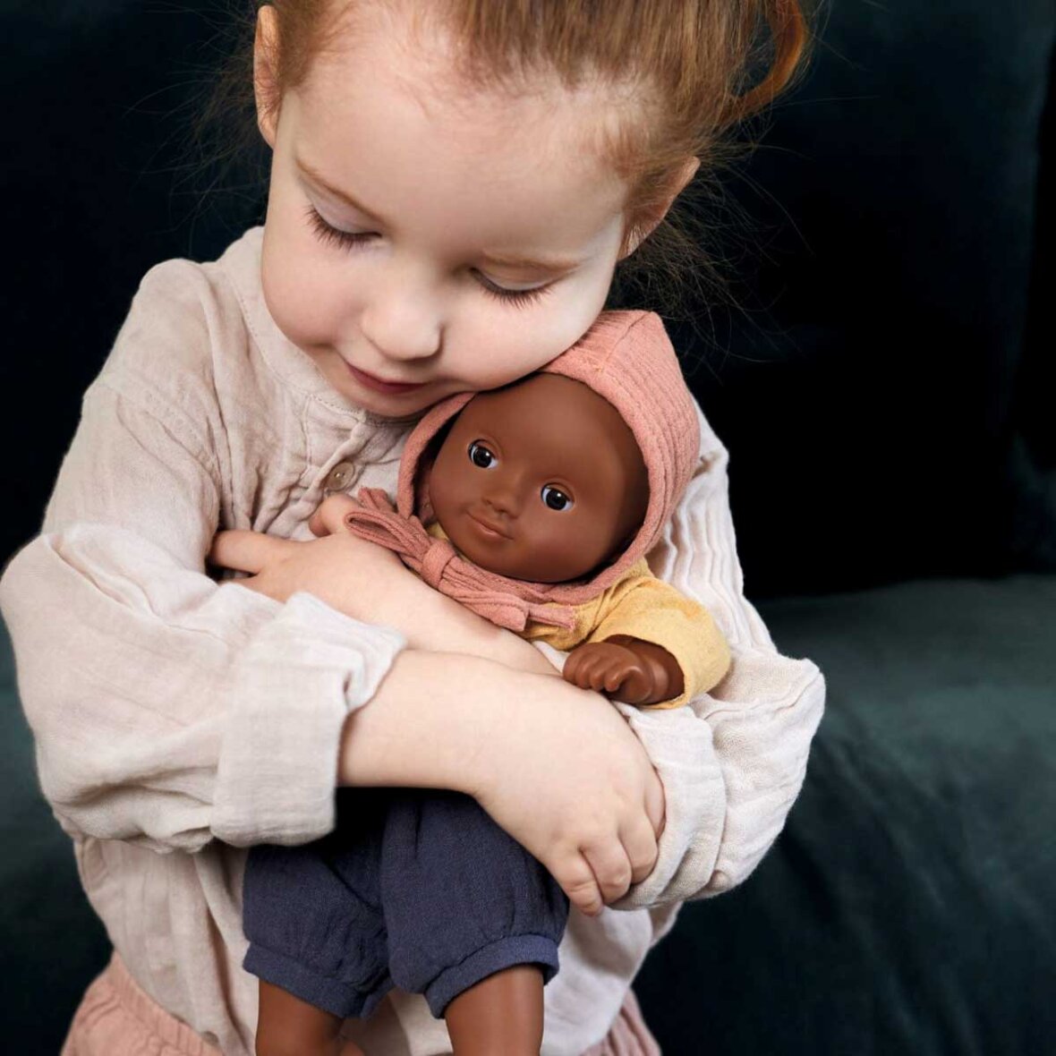 Med smukke sorte øjne og et matchende outfit er Baby Mimosa en dukke til børn fra 18 måneder.