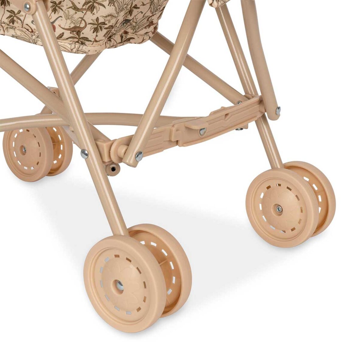 Dukkevogn designet med sele, bæretaske og dobbelte hjul på alle fire ben for ekstra stabilitet. Vognen har udtageligt stof i 100 % økologisk bomuld. Vognen købes fuldt samlet. Let at folde sammen og opbevare. Rammen er lavet af jern med blødt og fjedrende EVA-materiale på håndtagene.