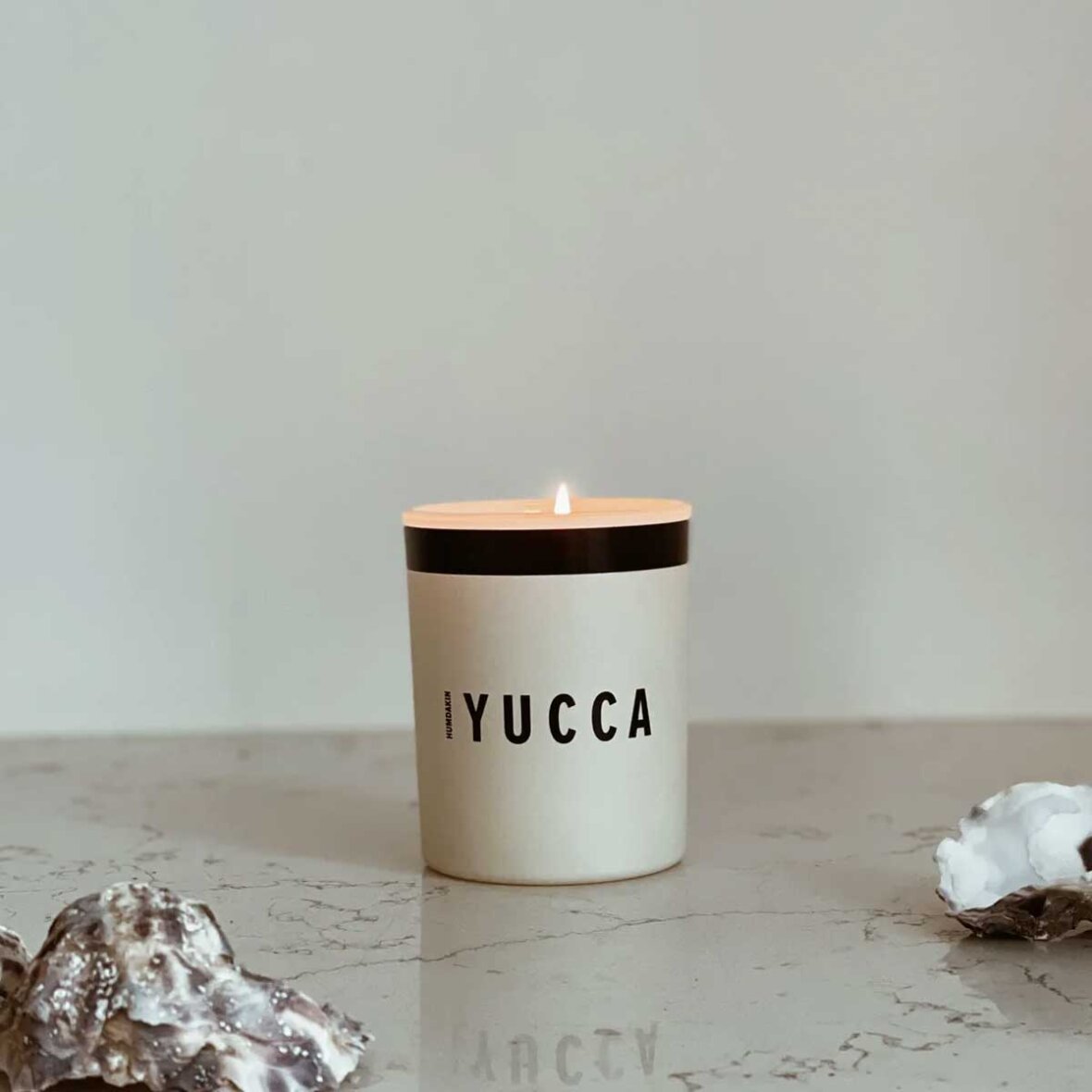Humdakin duftlys, Yucca, forlænger følelsen af et rent hjem. I stil med resten af Humdakins produkter, er lyset lavet med 100% naturlig, plantebaseret og bæredygtige ingredienser. Voksblandingen er GMO-fri, ikke giftig og brænder jævnt og flot.