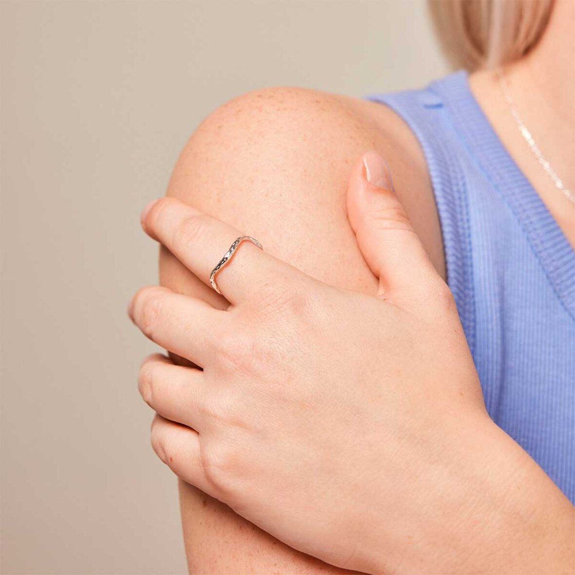 Sway ring fra Enamel Copenhagen. Denne ring er super smuk, tynd og elegant med et lækkert svaj, så du kan vende hvilken som helst side opad, for at skabe et varieret look.