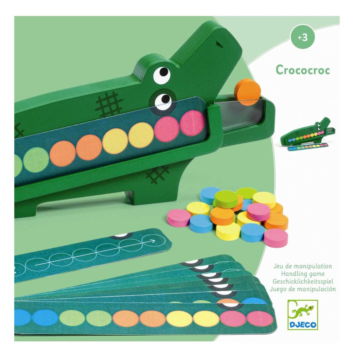 Man kan også bare lege med den, og se hvordan brikkerne triller ned i krokodillens mave.