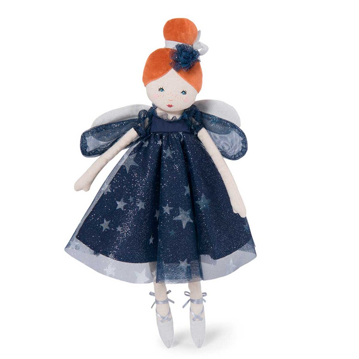 Feen Céleste er en fin stofdukke med smuk mørkeblå tylkjole med stjerner, påsyede vinger og lyse ballerinasko.