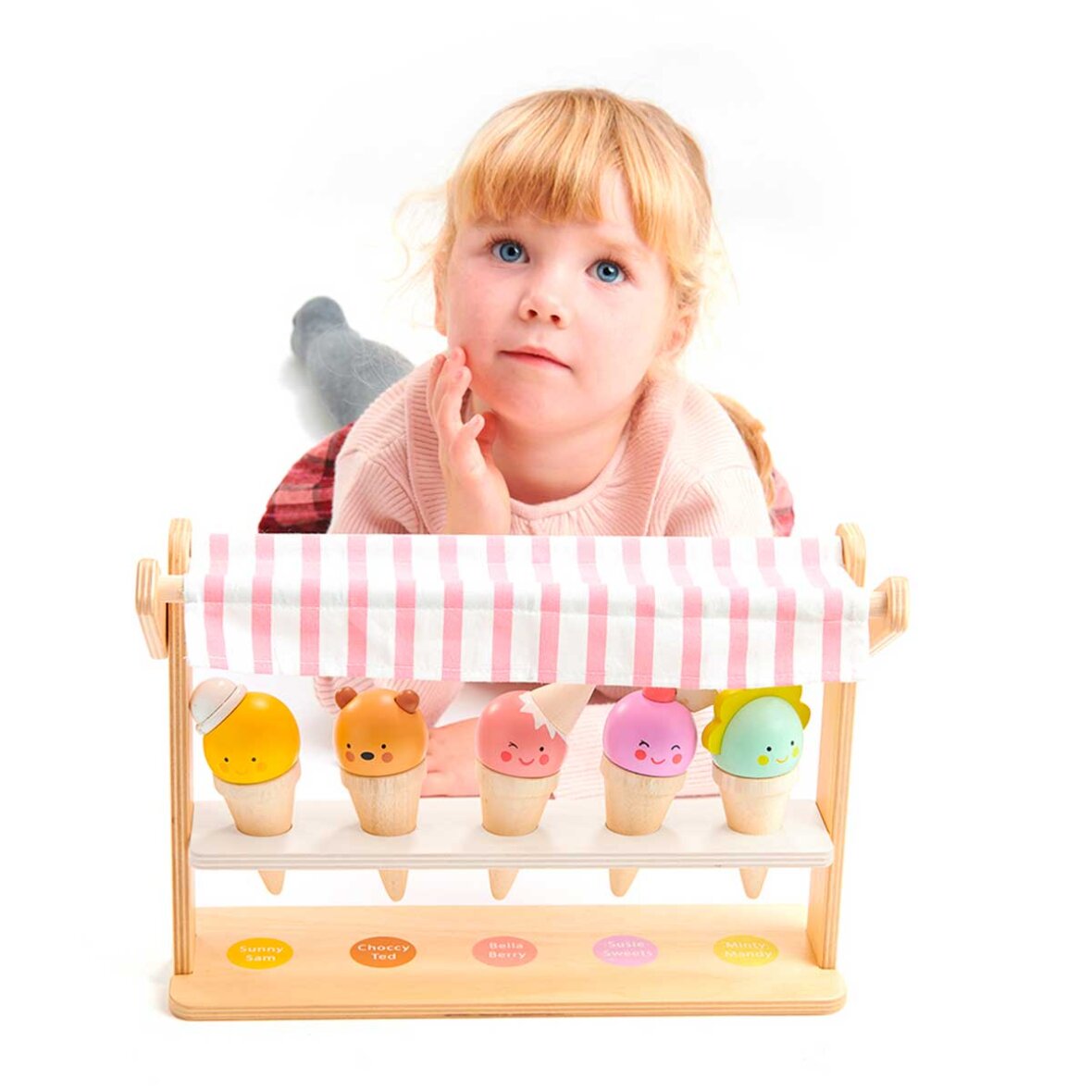 Isbod fra Tender Leaf. Her får du fem lækre og meget venlige is i massivt træ og en super fin lille isbod. Denne super fine isbod byder op til flere timers leg.
