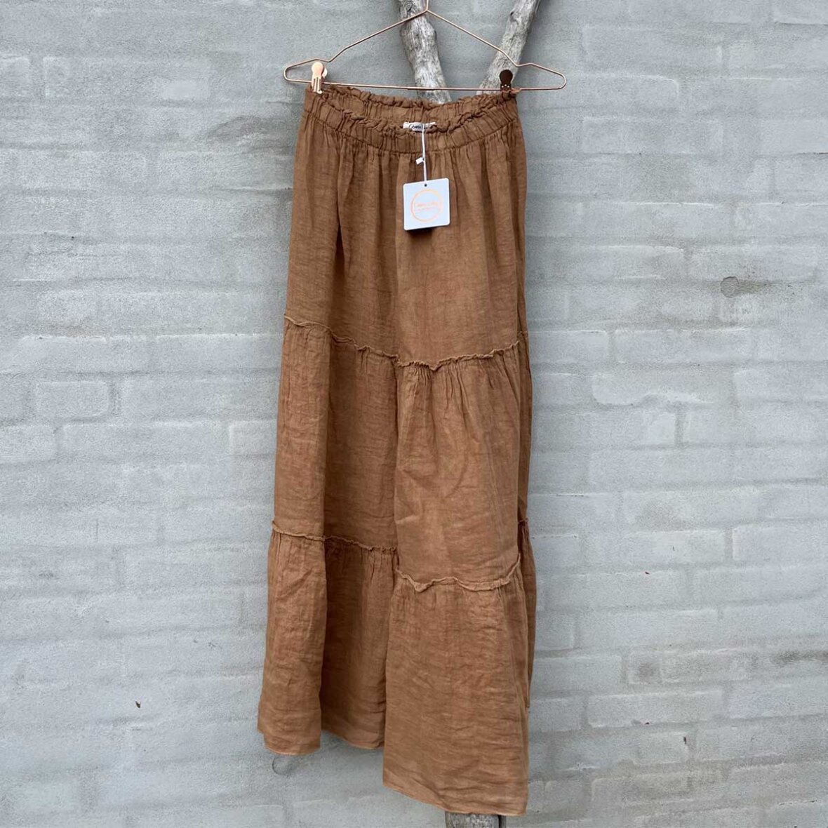 Kanel nederdel fra Cabana Living. Her får du en super fin nederdel, som kommer med smukke flæsesyninger. Denne skønne nederdel kommer i en lækker hørkvalitet.