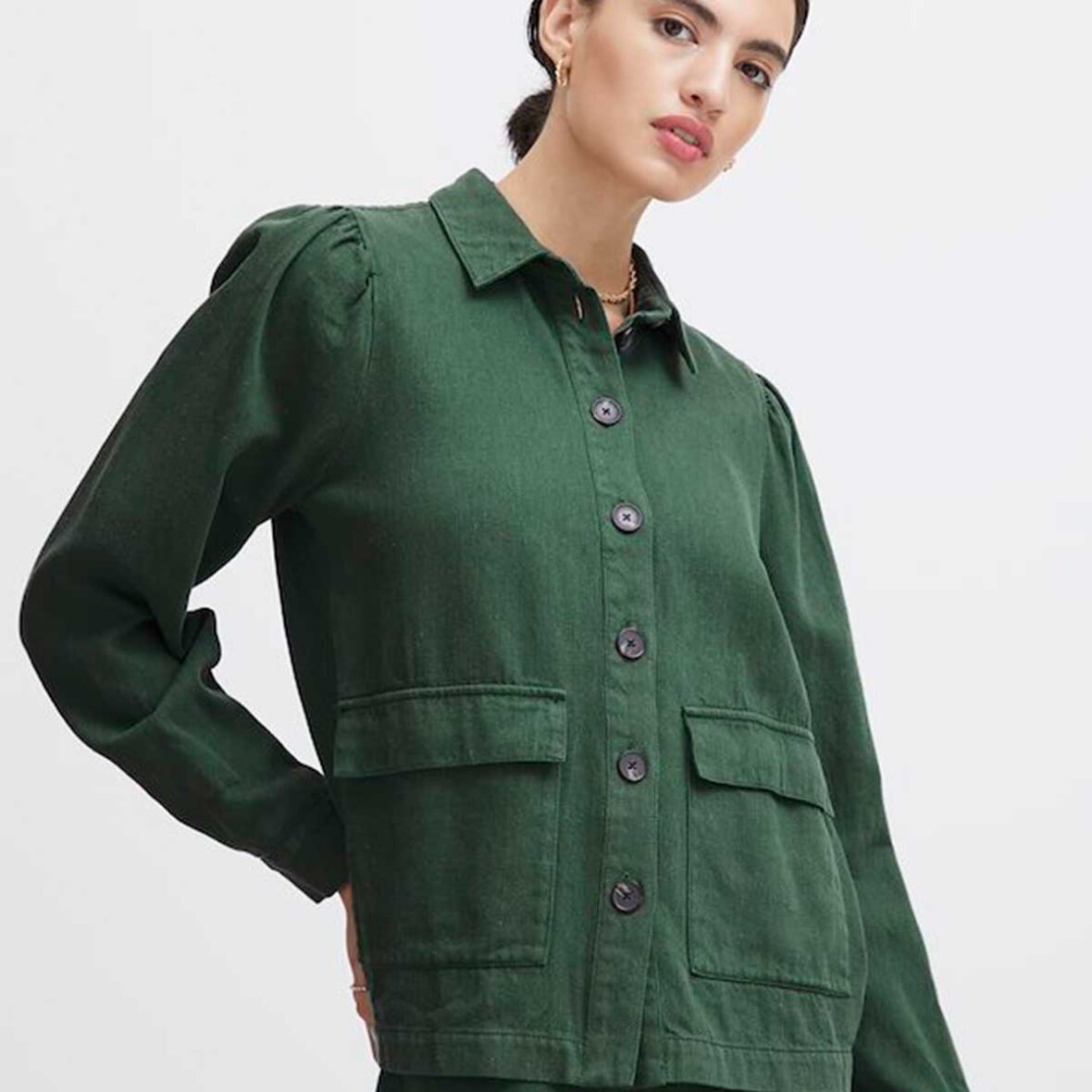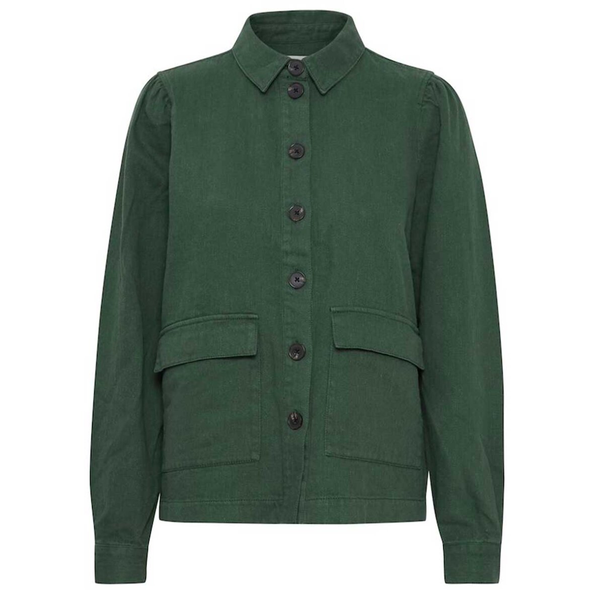 Irkunis jakke fra Atelier Rêve. Her får du en super fin grøn jakke. Denne jakke er den perfekte overgangsjakke, den er med to lommer på fronten og lukkes med knapper.