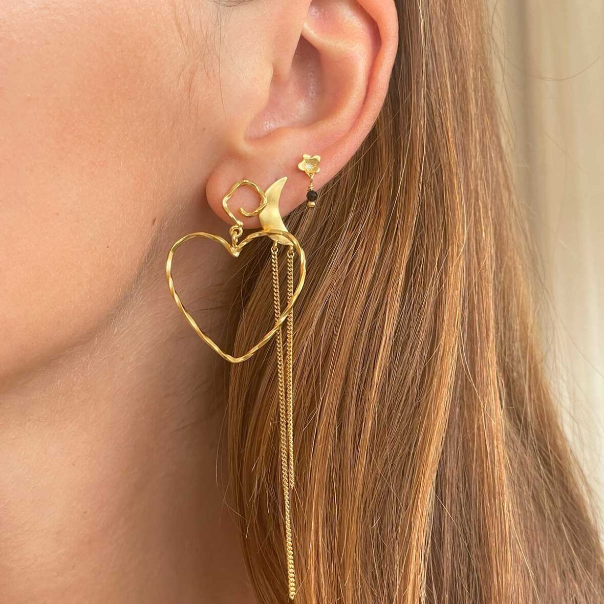 BELLA MOON ØRERING M/LANGE KÆDER - 1 STK. | FORGYLDT