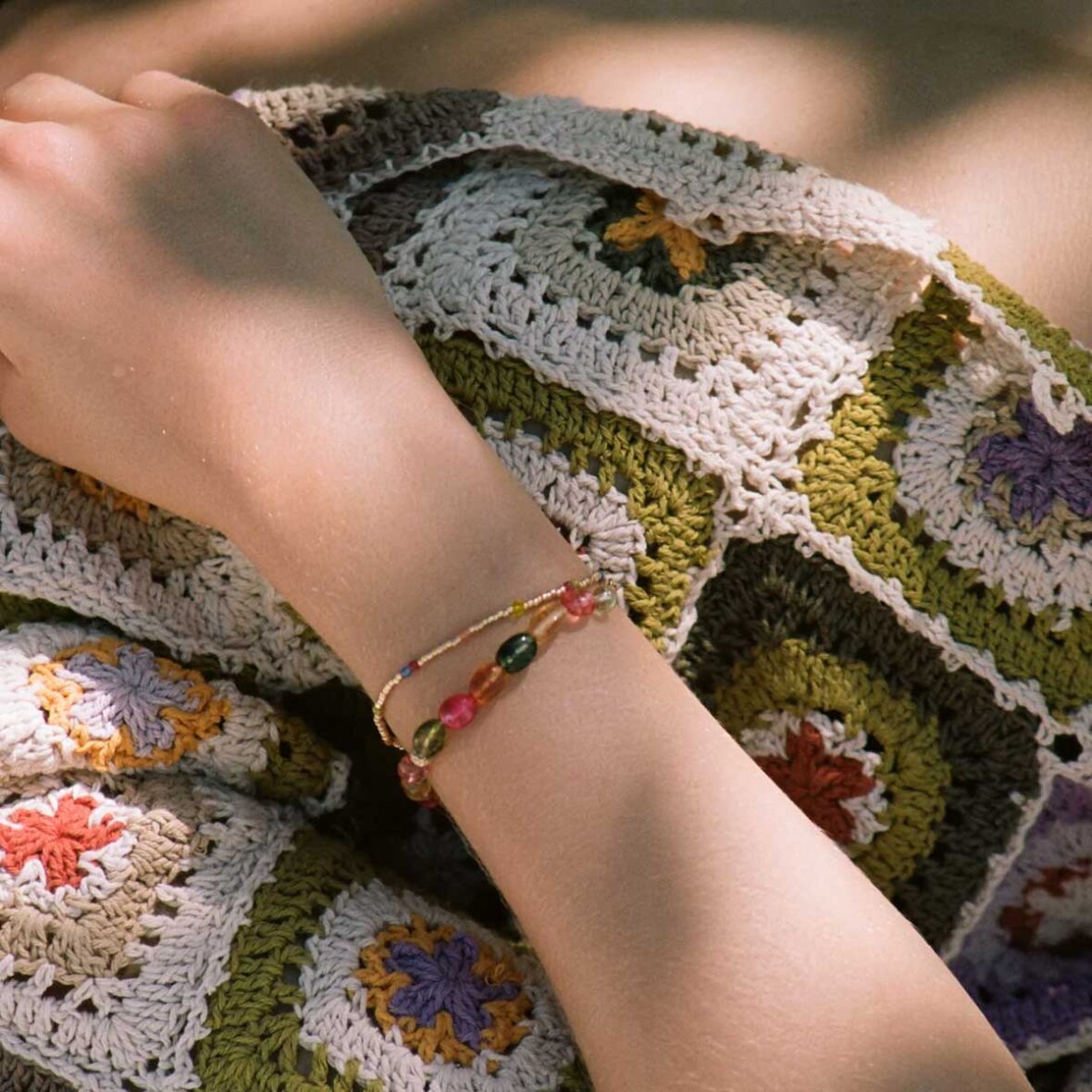 Golden Sands armbånd fra Anni Lu. Golden Sands armbåndet giver dig et øjeblikkeligt elegant look med sine gyldne perler og ædelsten. Den kan bæres alene eller blandes med deres chunky armbånd for et unikt statement-look.