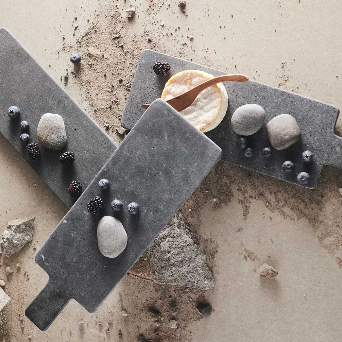Det smalle tapasbræt fra Valley serien er lavet i den smukke indonesiske flodsten, som giver brættet et naturligt look.