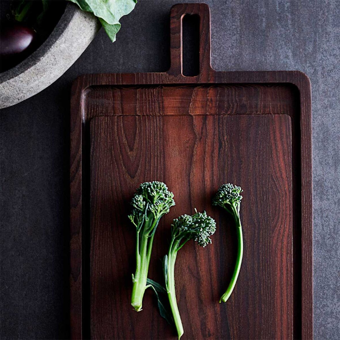 Det store skærebræt med saftrille er en del af den smukke mørke Yami køkkenkollektion, som er lavet af karboniseret asketræ.