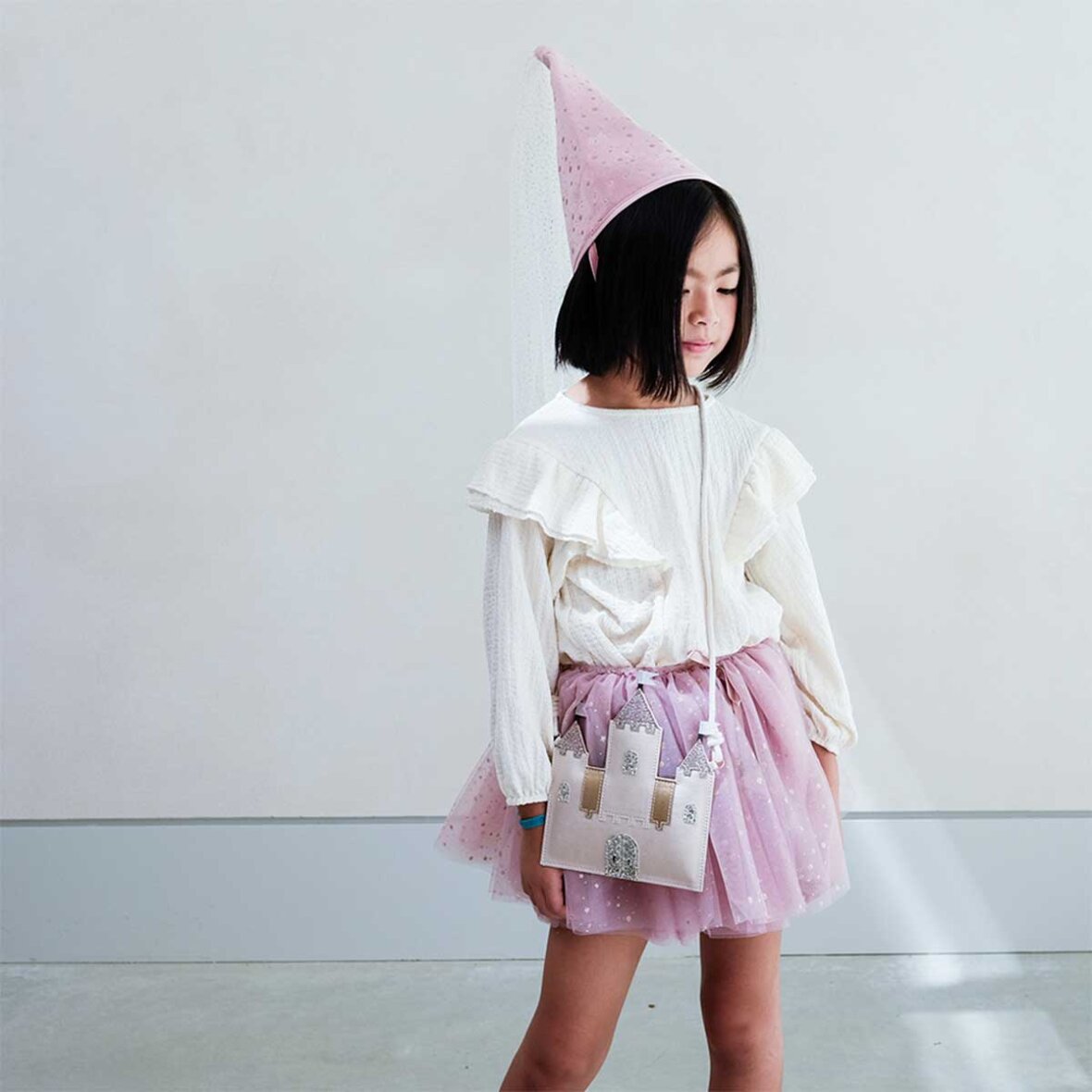 Taske med rem fra Mimi & Lula. Her får du en fin lille flad taske, med en rem. Den taske er formet som et smukt prinsesseslot.