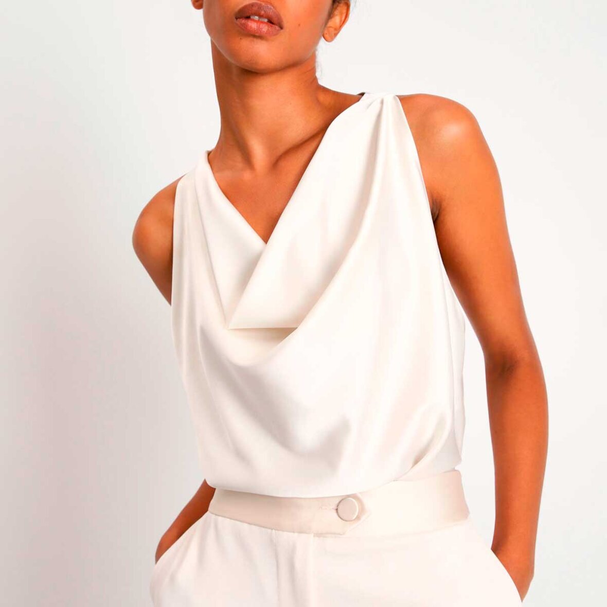 Top fra Imperial. Denne top kommer i det fineste satin look. Denne top har flot vandfaldsudskæring. Toppen har en klassisk ryg.